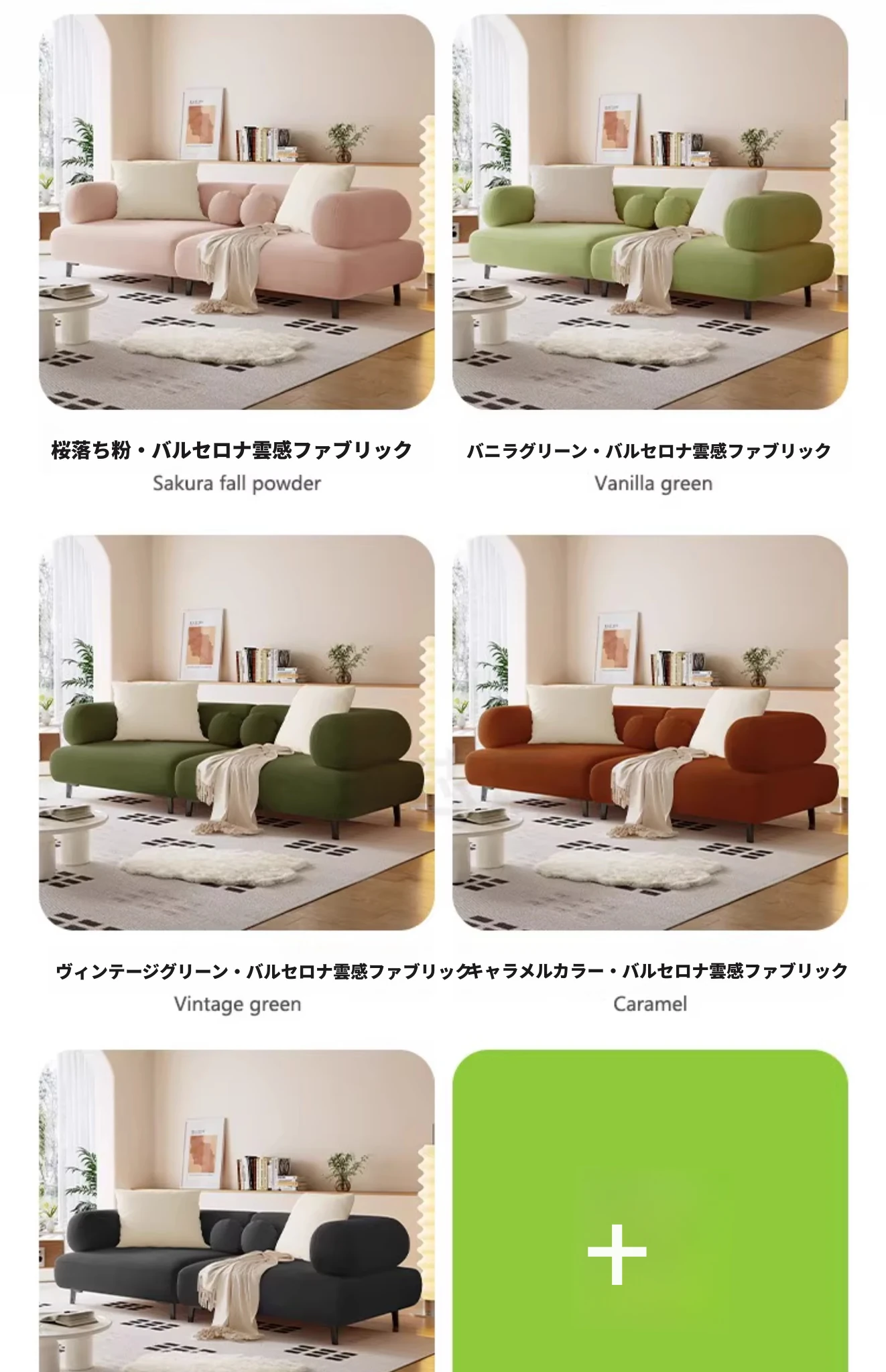 【バルセロナ雲感フリース+ダウンクッション】ホワイト+レトログリーン