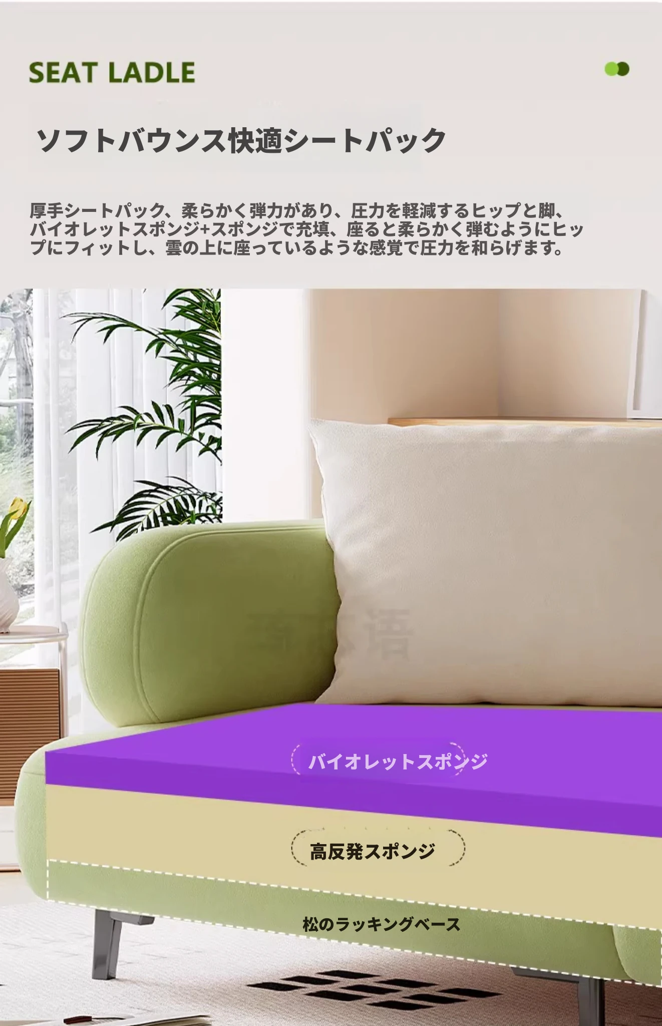 小四人掛け2.6メートル【水感紫羅蘭+高反発スポンジクッション】