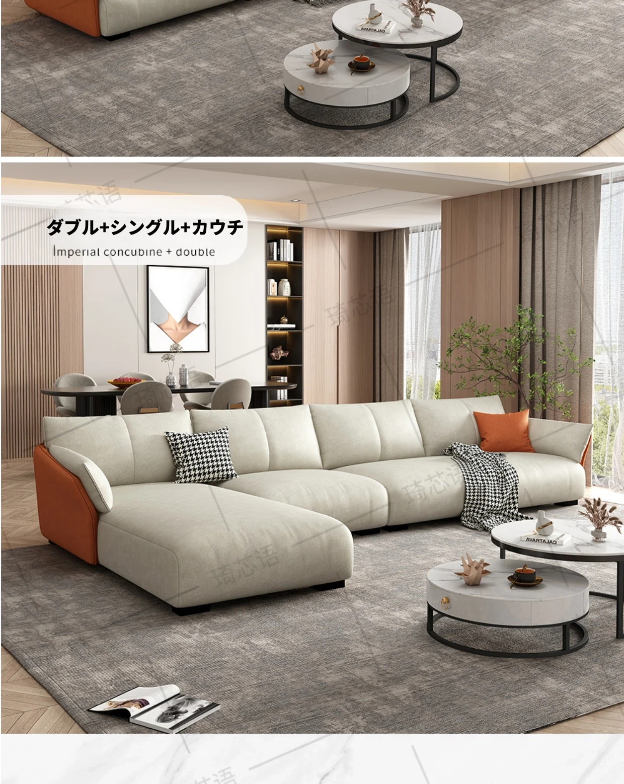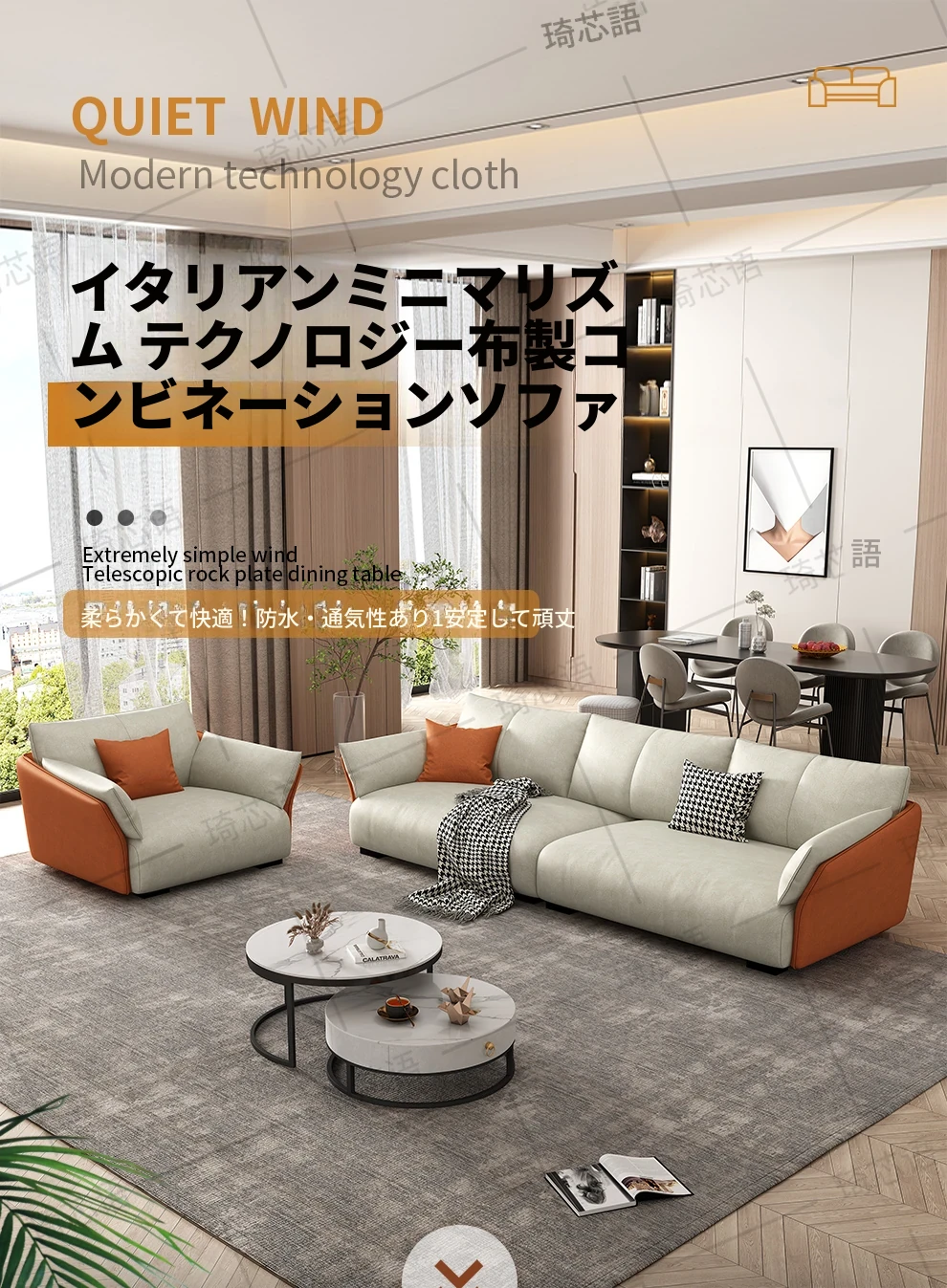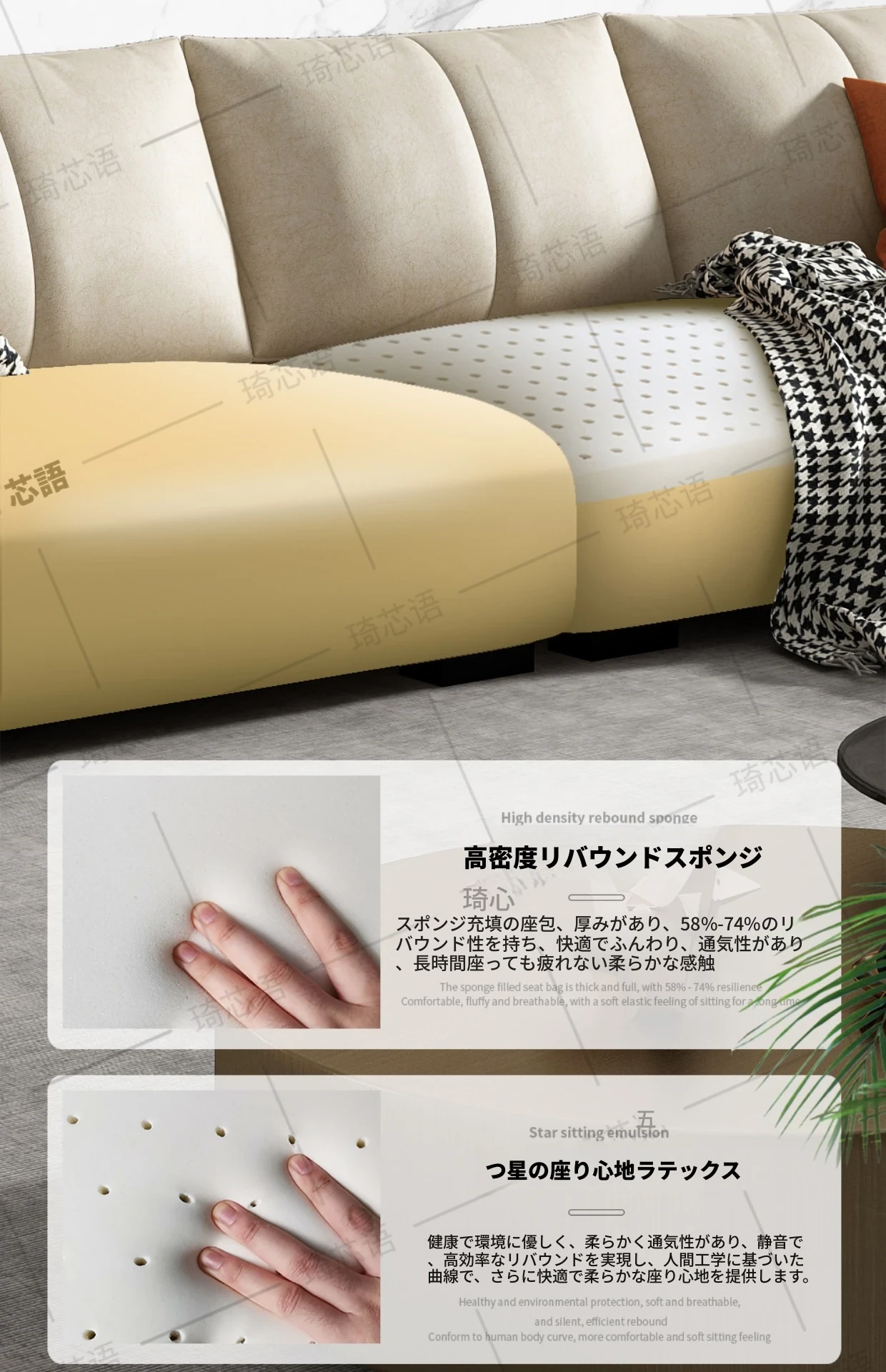 モダンでラグジュアリーな快適さを追求した、フローティングデザインの高級ファブリックラテックスソファ。シンプルで洗練されたスタイルで、大小様々なリビングルームに最適!