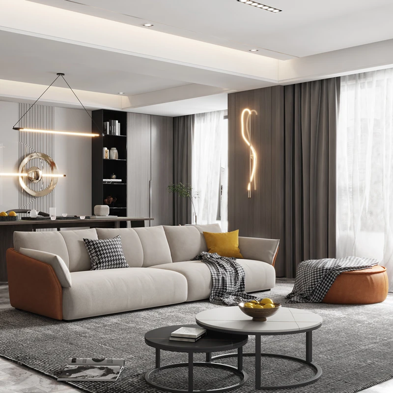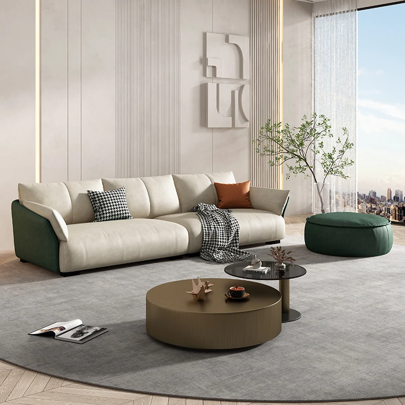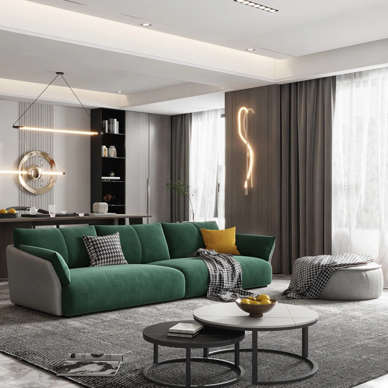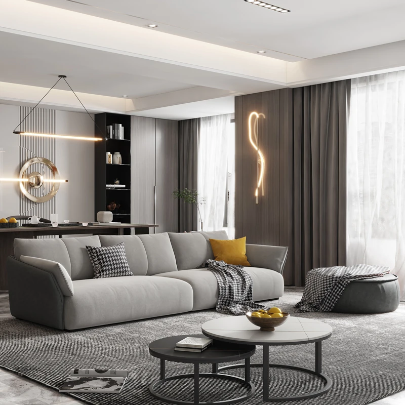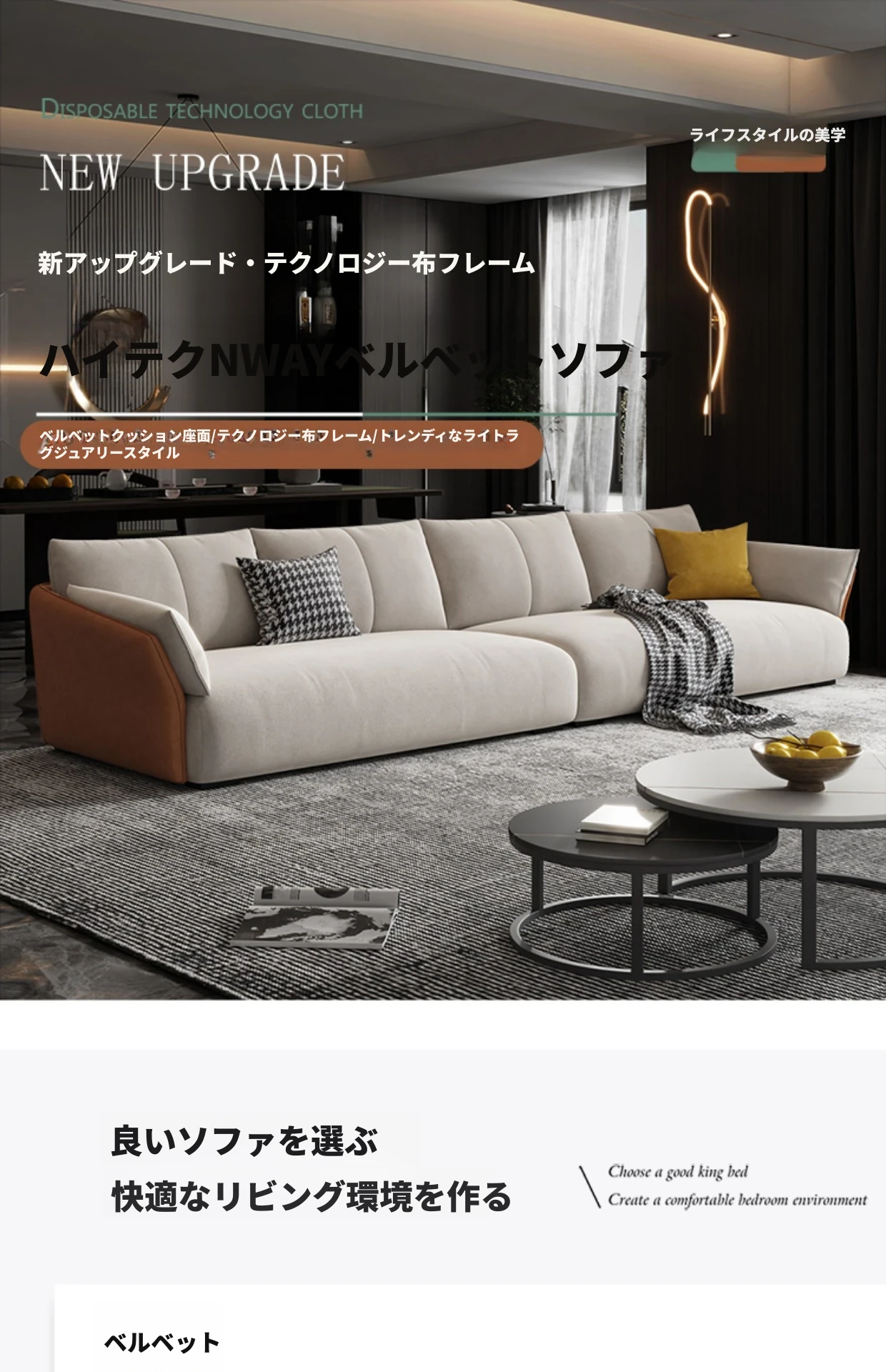 モダンでラグジュアリーな快適さを追求した、フローティングデザインの高級ファブリックラテックスソファ。シンプルで洗練されたスタイルで、大小様々なリビングルームに最適!