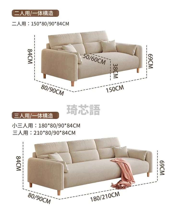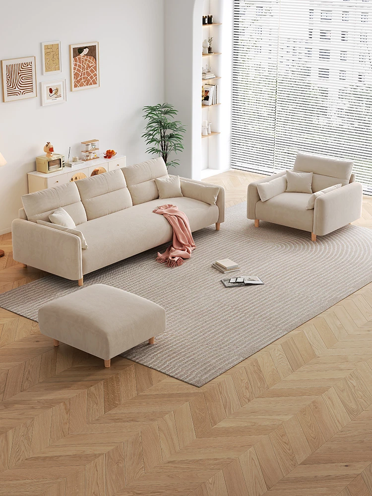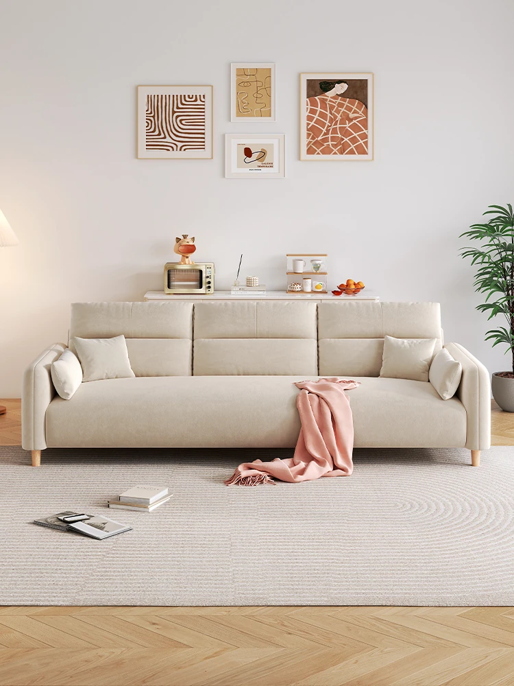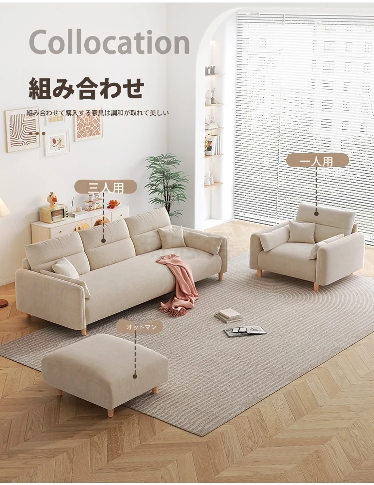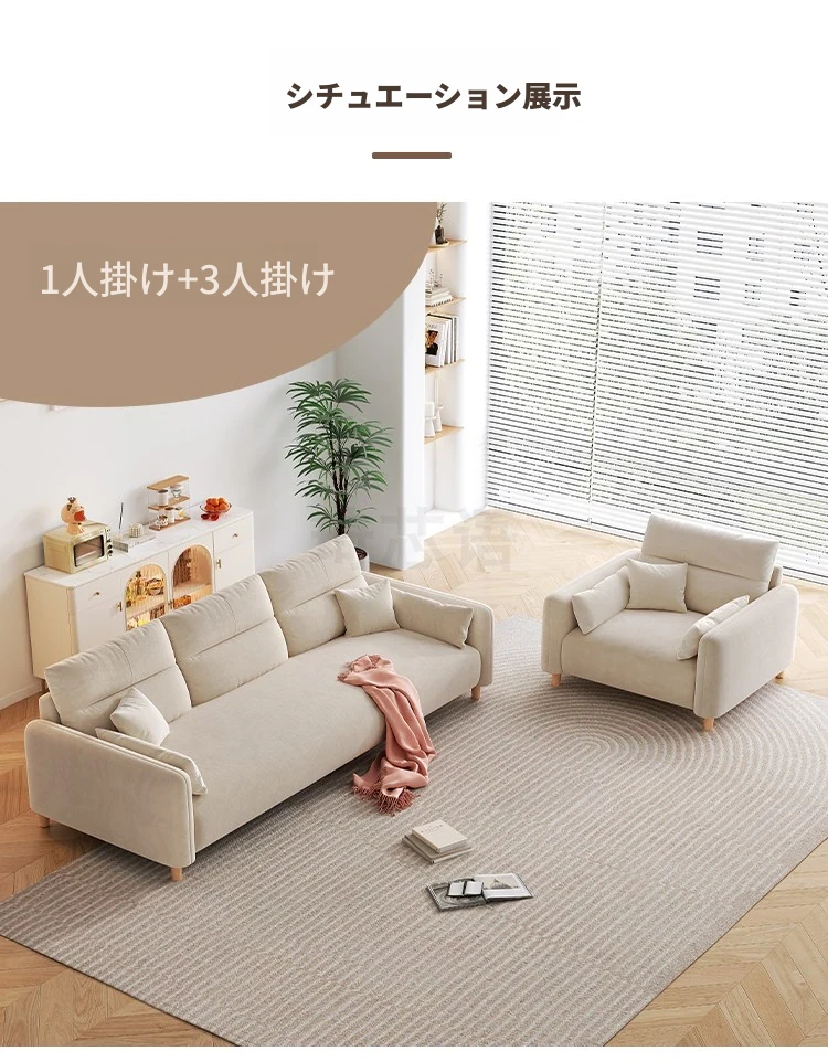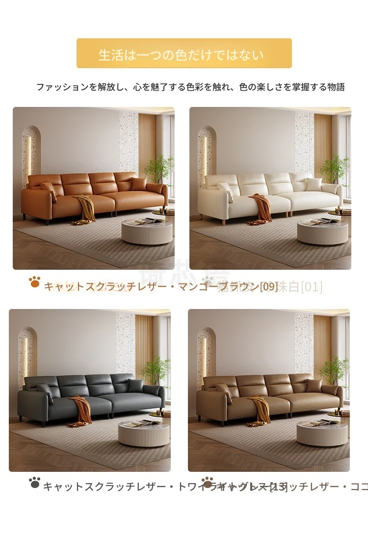 クリーム風リビング用オークリーニャフロス猫爪防止皮革ソファー、コンパクトサイズの家庭向けストレート組み合わせ、モダンでシンプルなデザイン!快適さとスタイルを両立させた理想のソファーです。