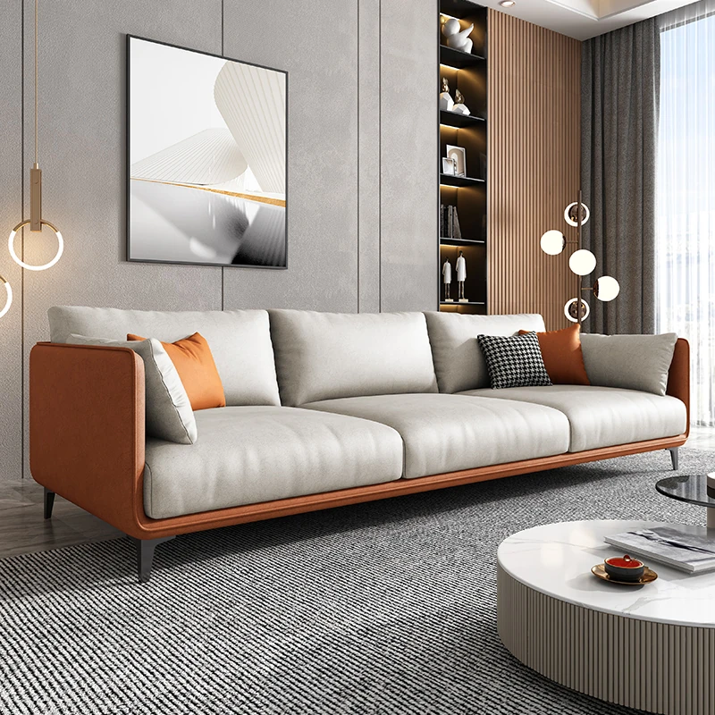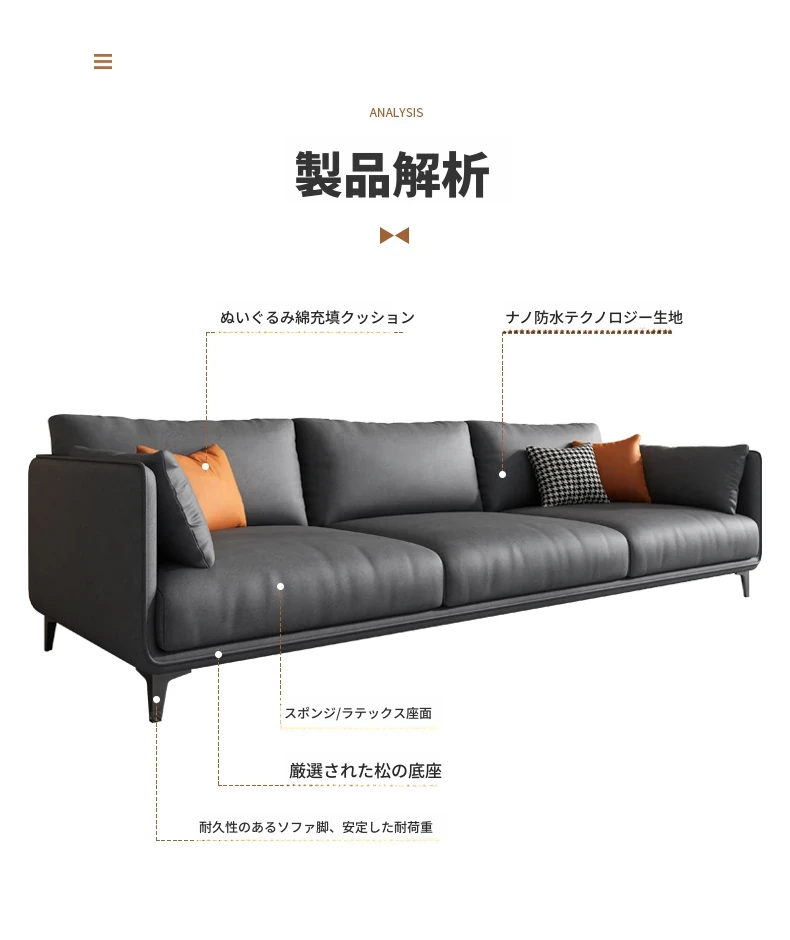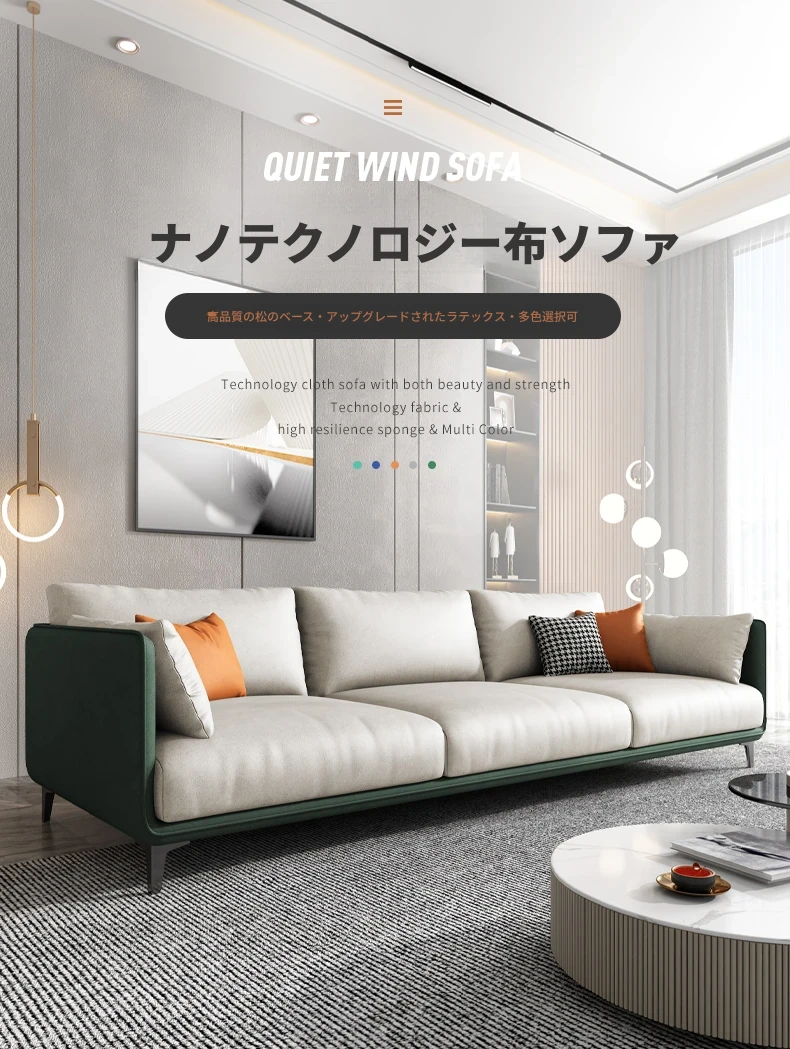 モダンミニマリストテクスチャー布製リビングソファー|高密度スポンジ&ラテックス使用|松の木製ベース|3~4人用のスリムデザイン|狭い空間に最適!快適さとスタイルを両立した一品です。