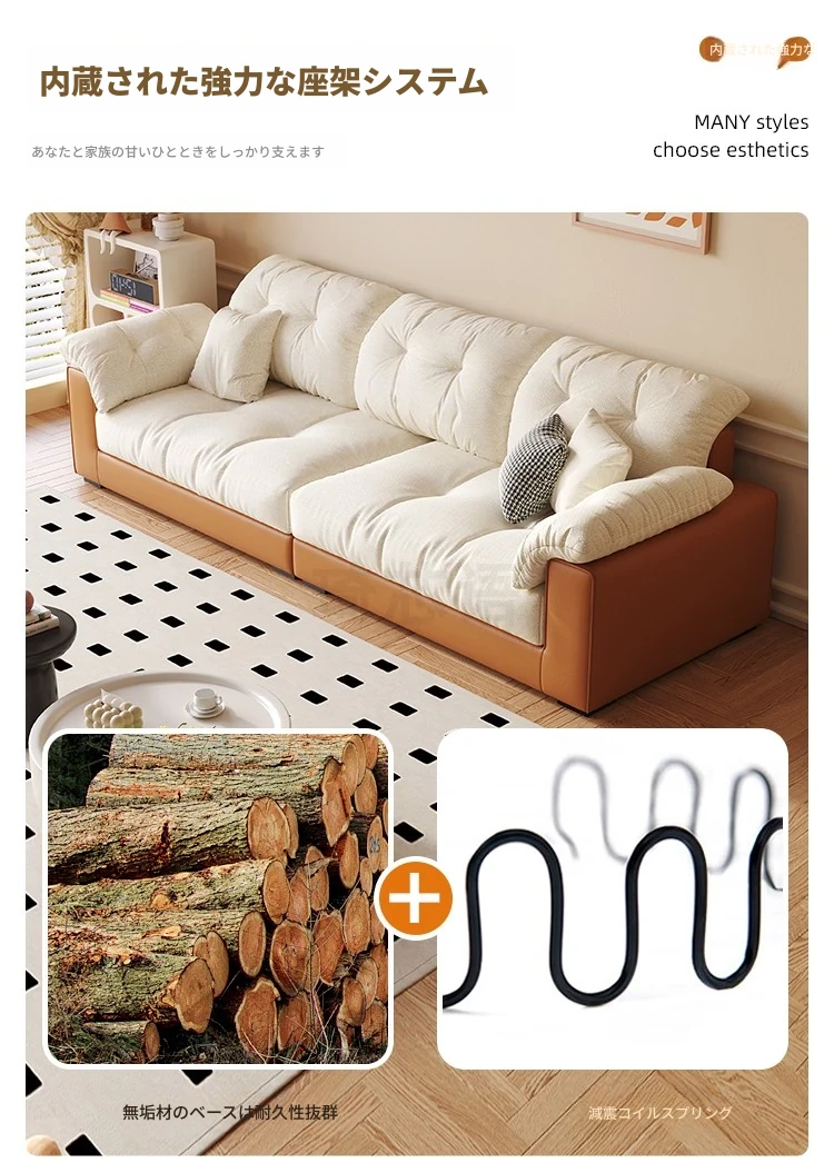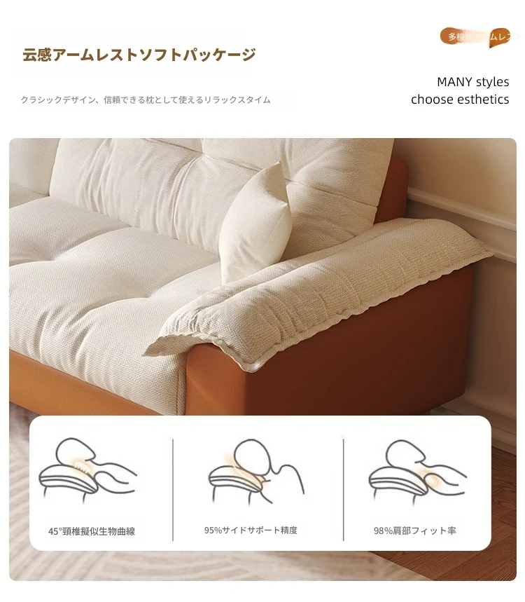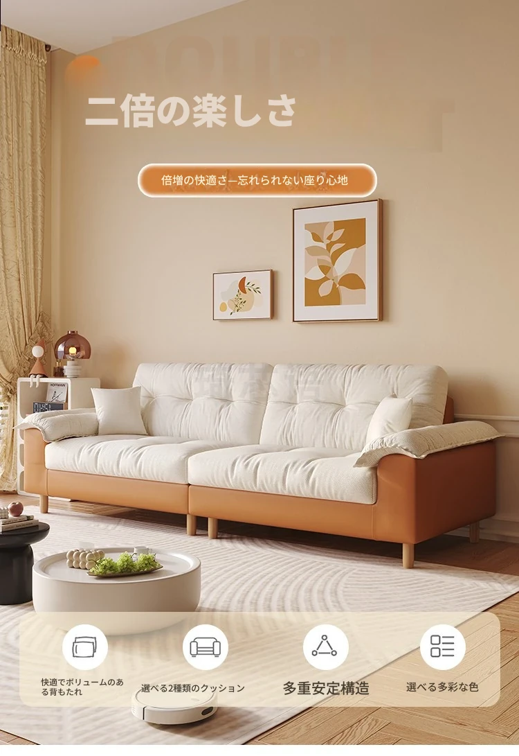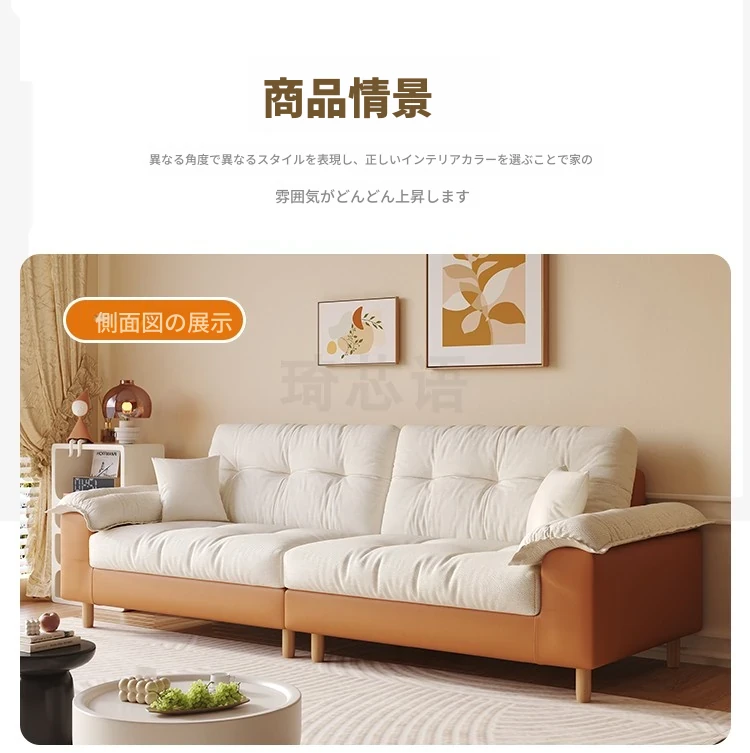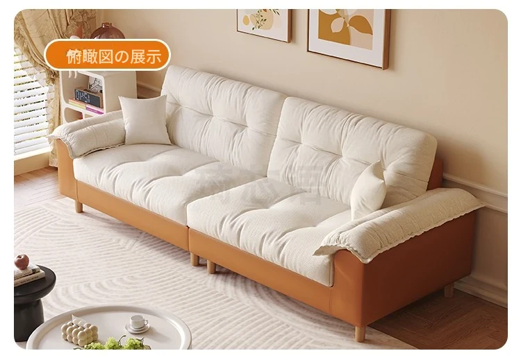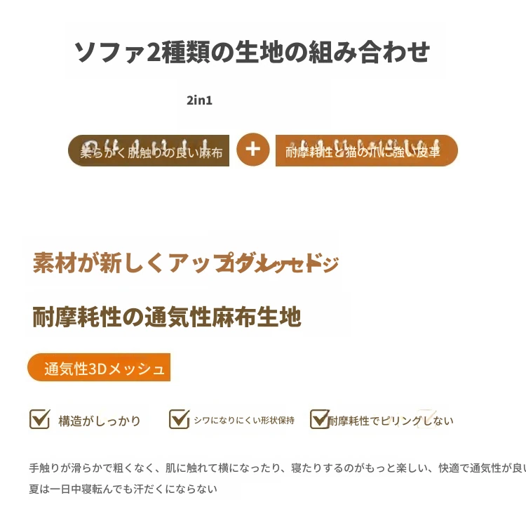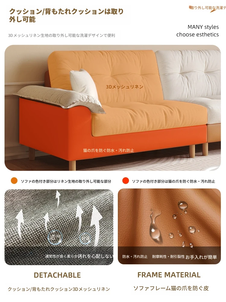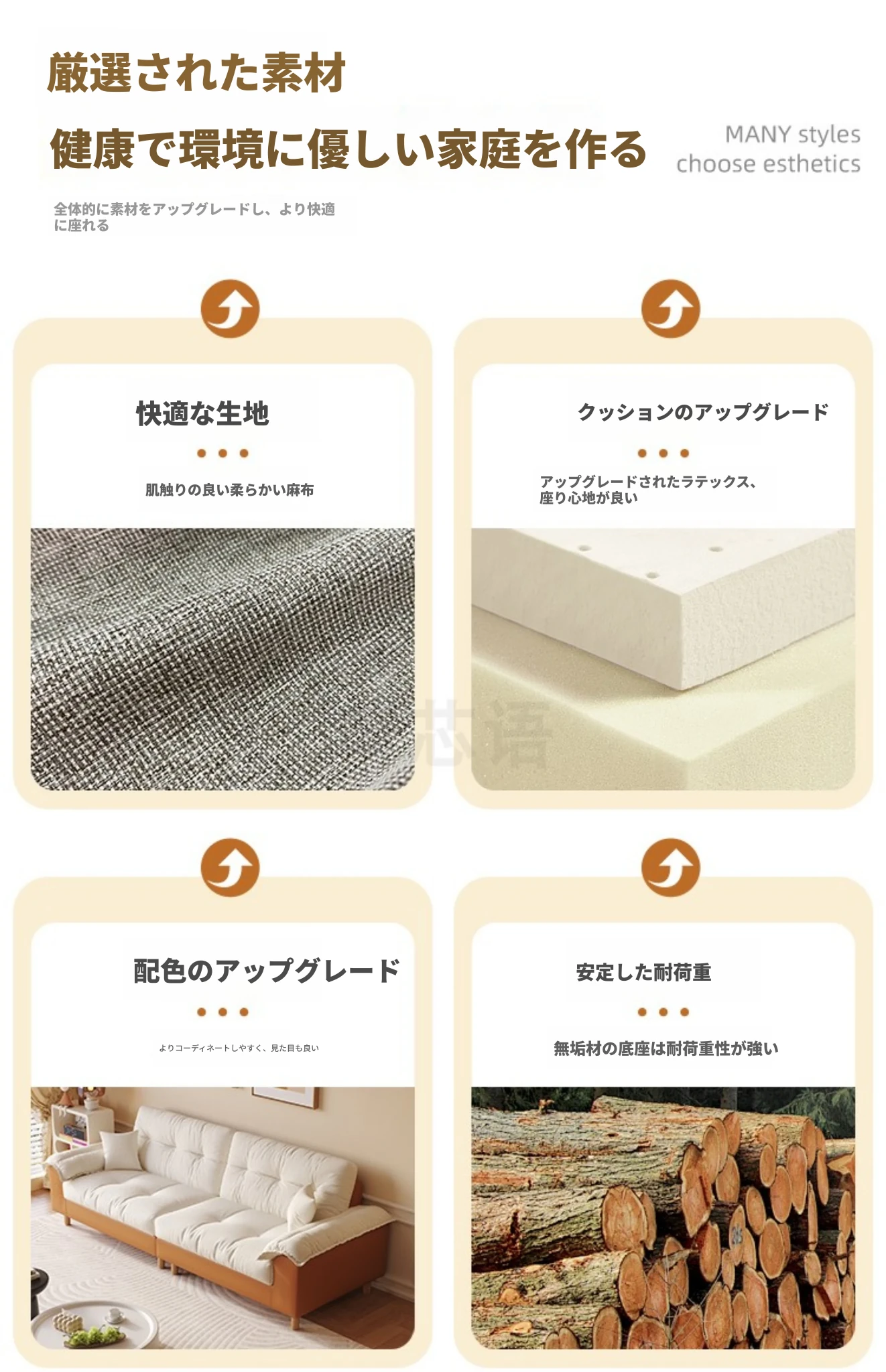 クリーム風リビング小型ソファー|モダンシンプルな麻布&猫の爪とぎ対応|洗えるコンビネーションデザイン|ふわふわ雲のような快適さで、心地よい居心地を実現!