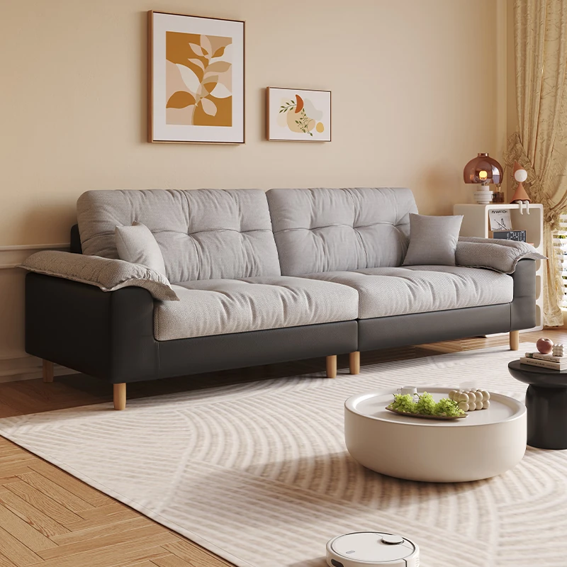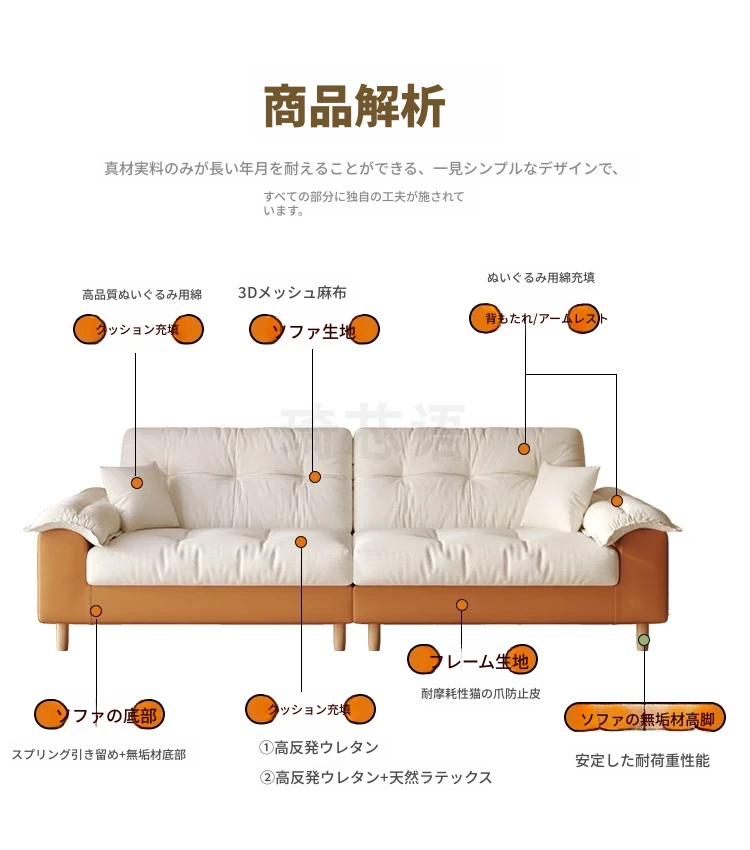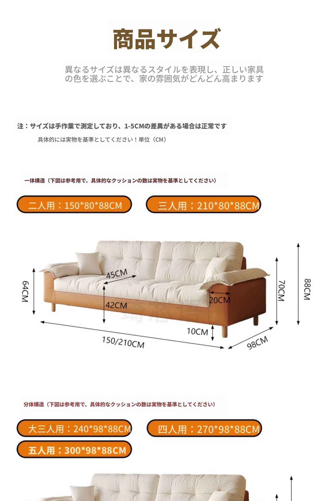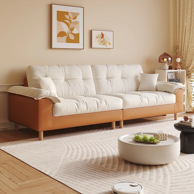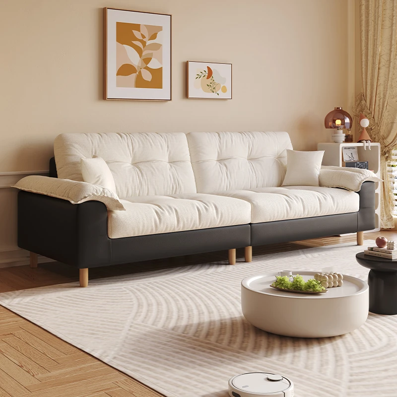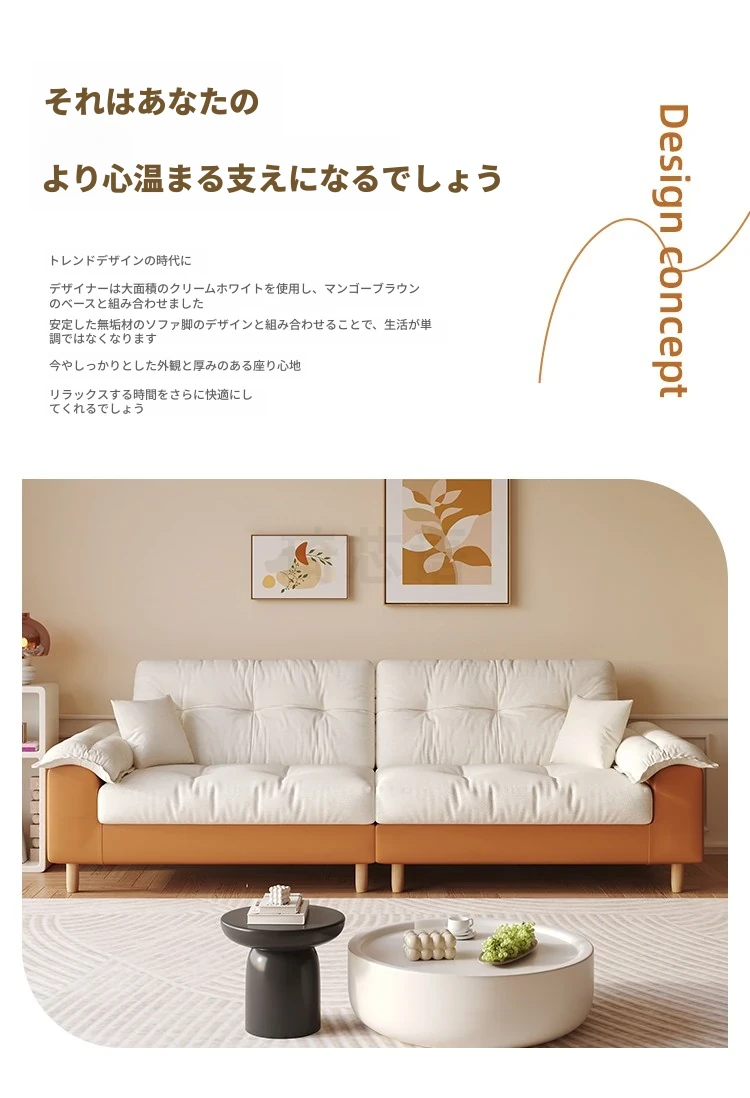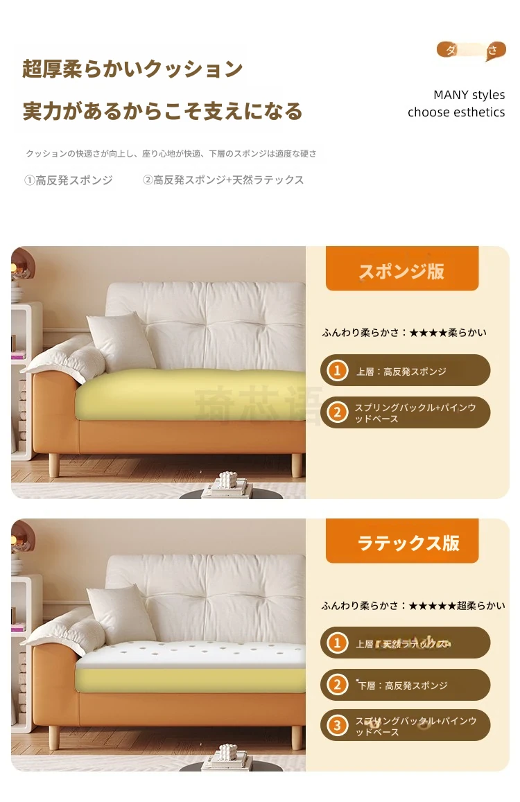 クリーム風リビング小型ソファー|モダンシンプルな麻布&猫の爪とぎ対応|洗えるコンビネーションデザイン|ふわふわ雲のような快適さで、心地よい居心地を実現!
