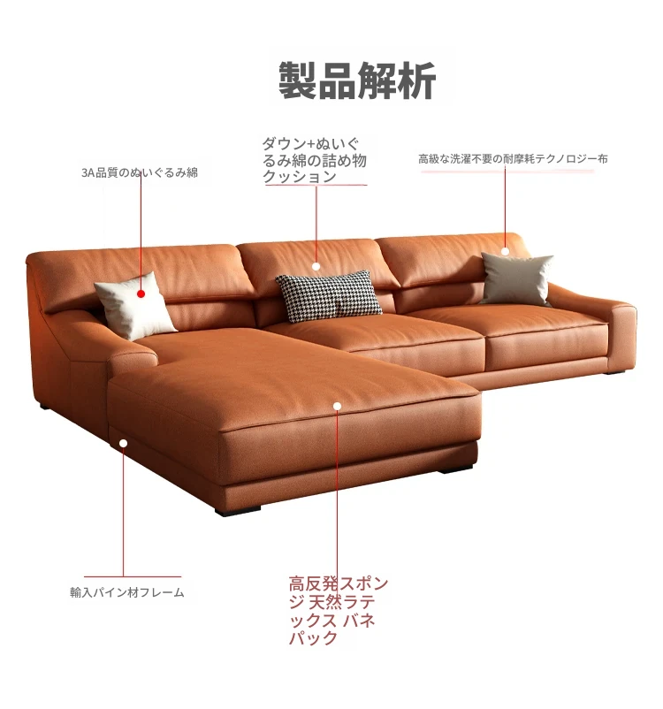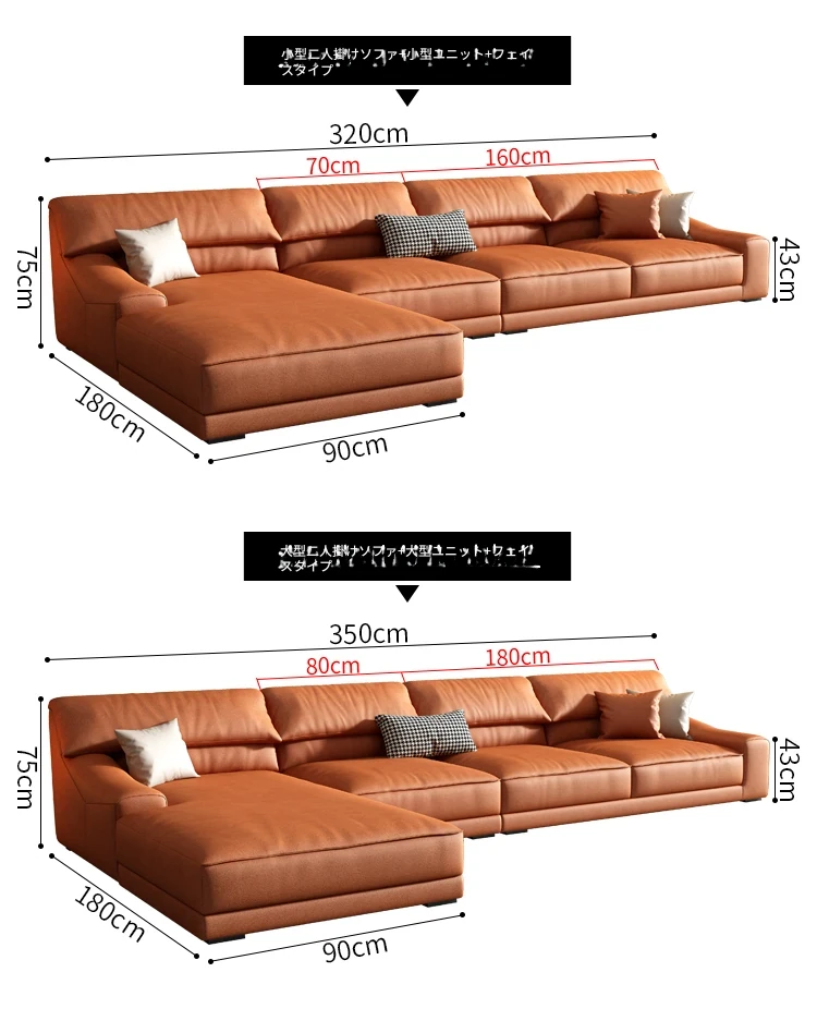 大ダブルソファ+大シングルソファ+左カウチ3.5メートル