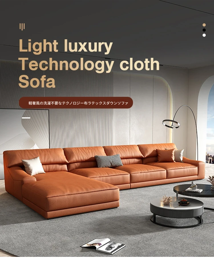 現代的シンプルなデザインのダウン不要洗浄テクノロジー布製ソファ、大きな深座りタイプのラグジュアリーリビングルームセット、快適なラテックスクッション付き。