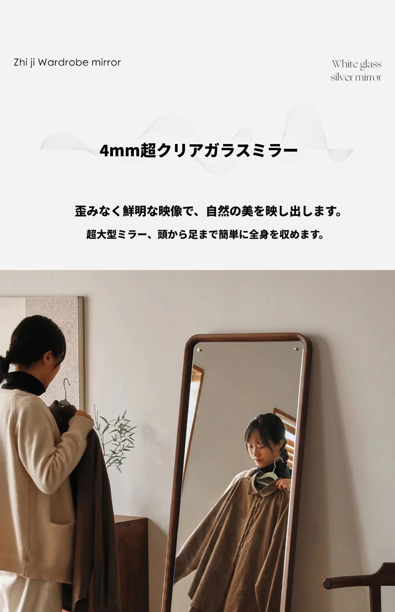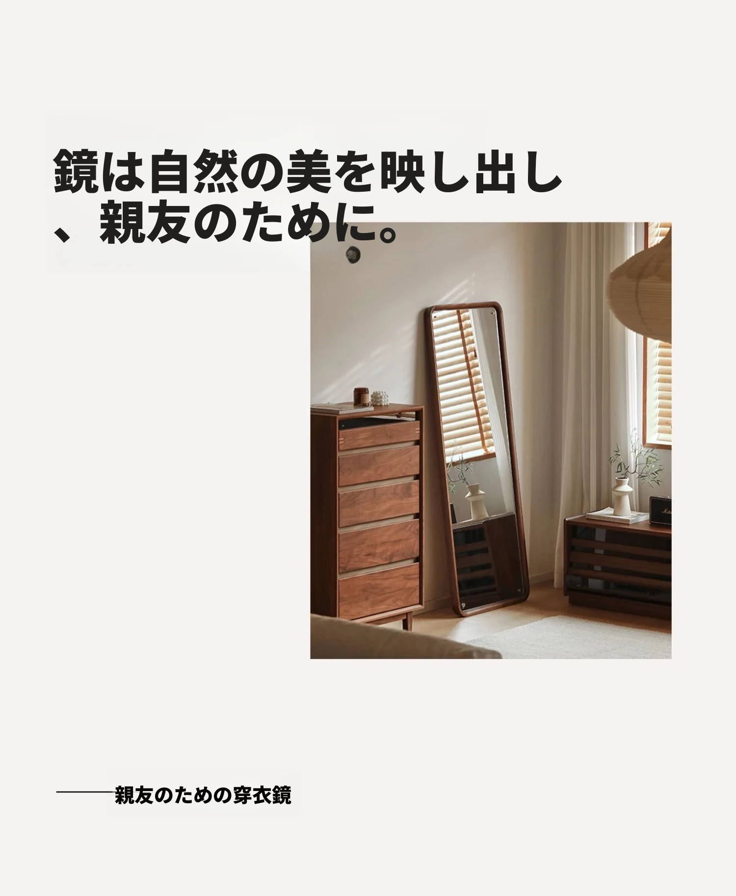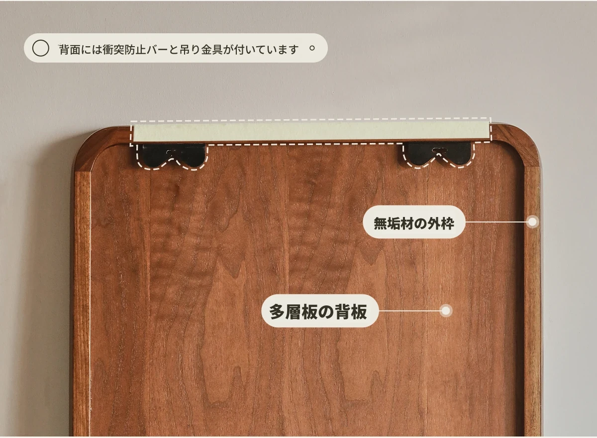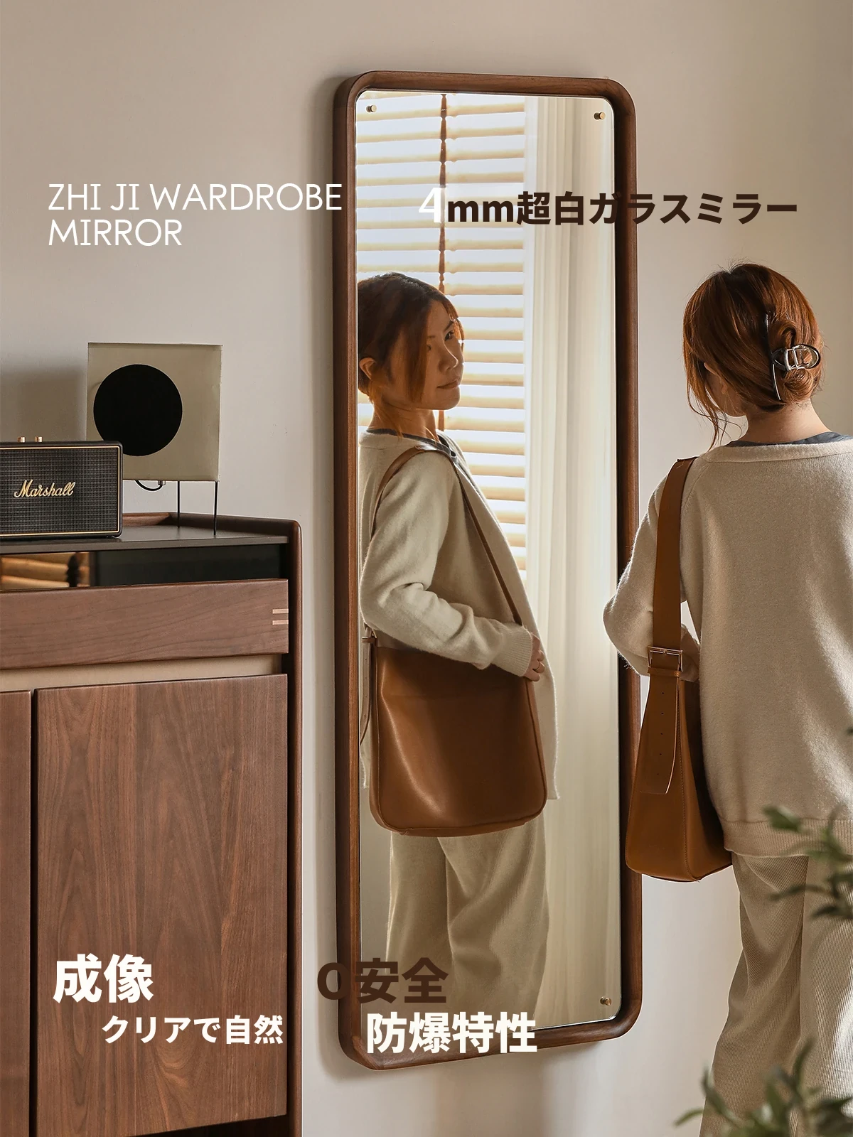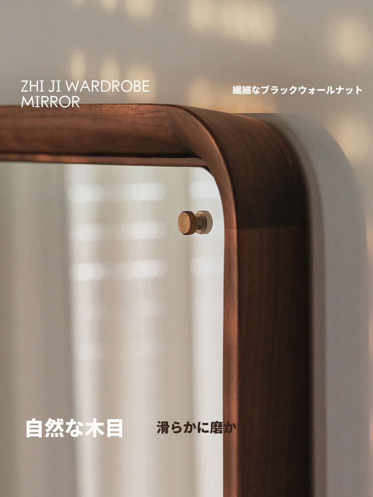 北欧スタイルの無垢材全身鏡 - ブラックウォールナット製の立て掛け鏡、壁掛けも可能で、寝室の試着に最適!シンプルで洗練されたデザインで、お部屋をより魅力的に演出します。