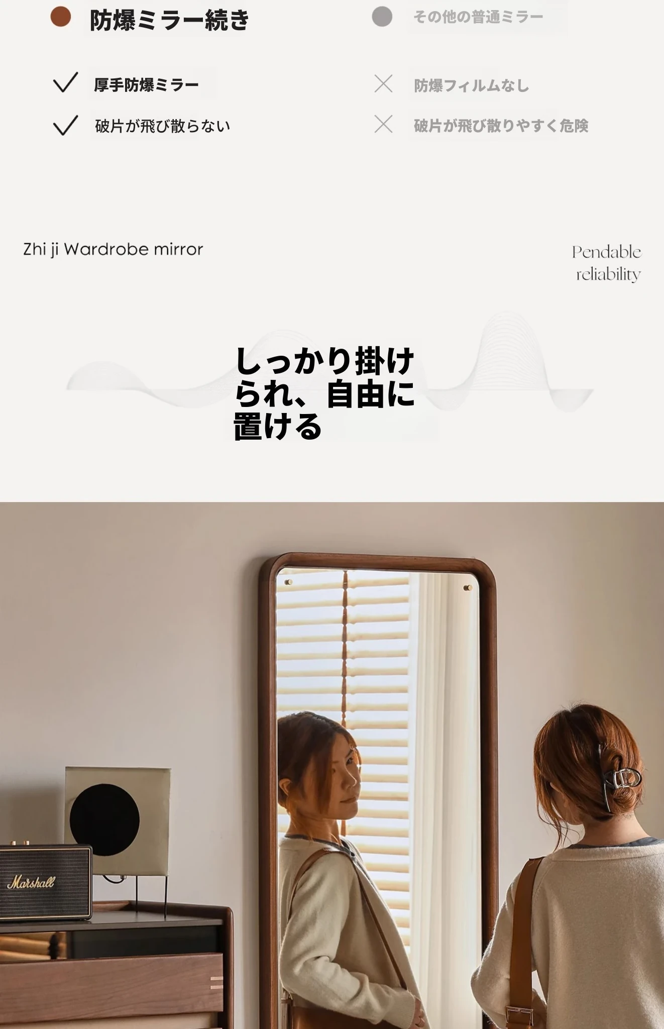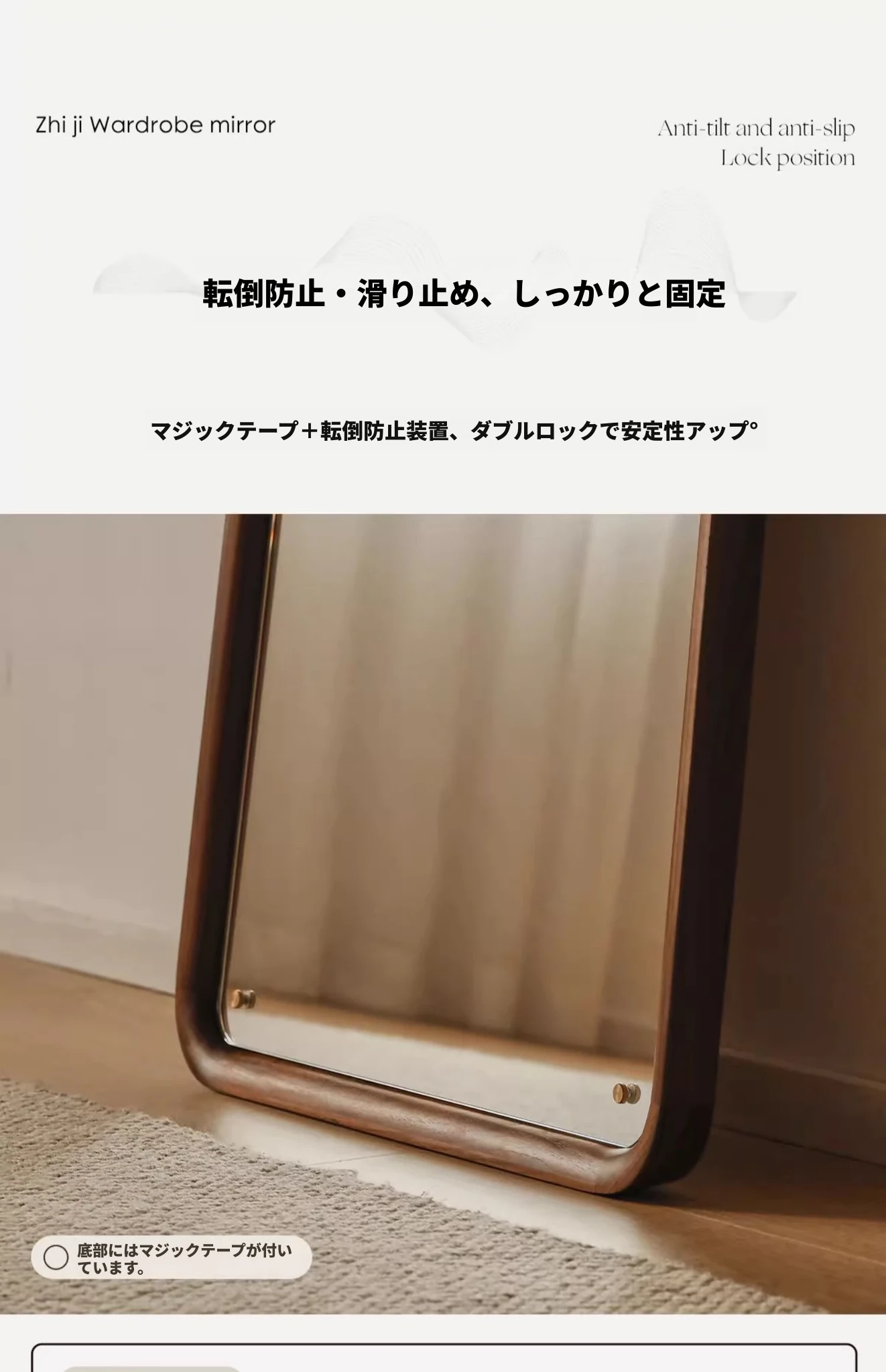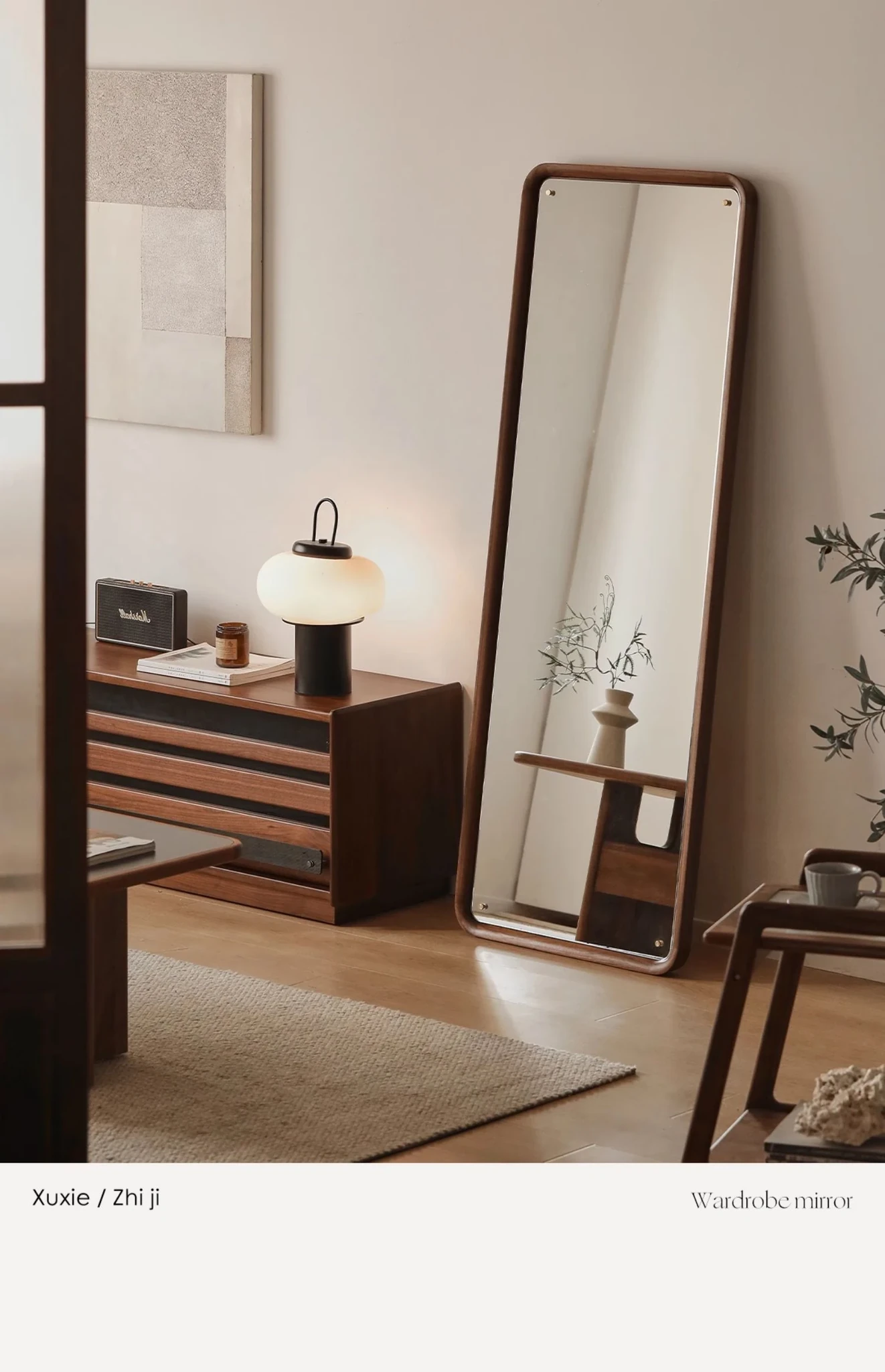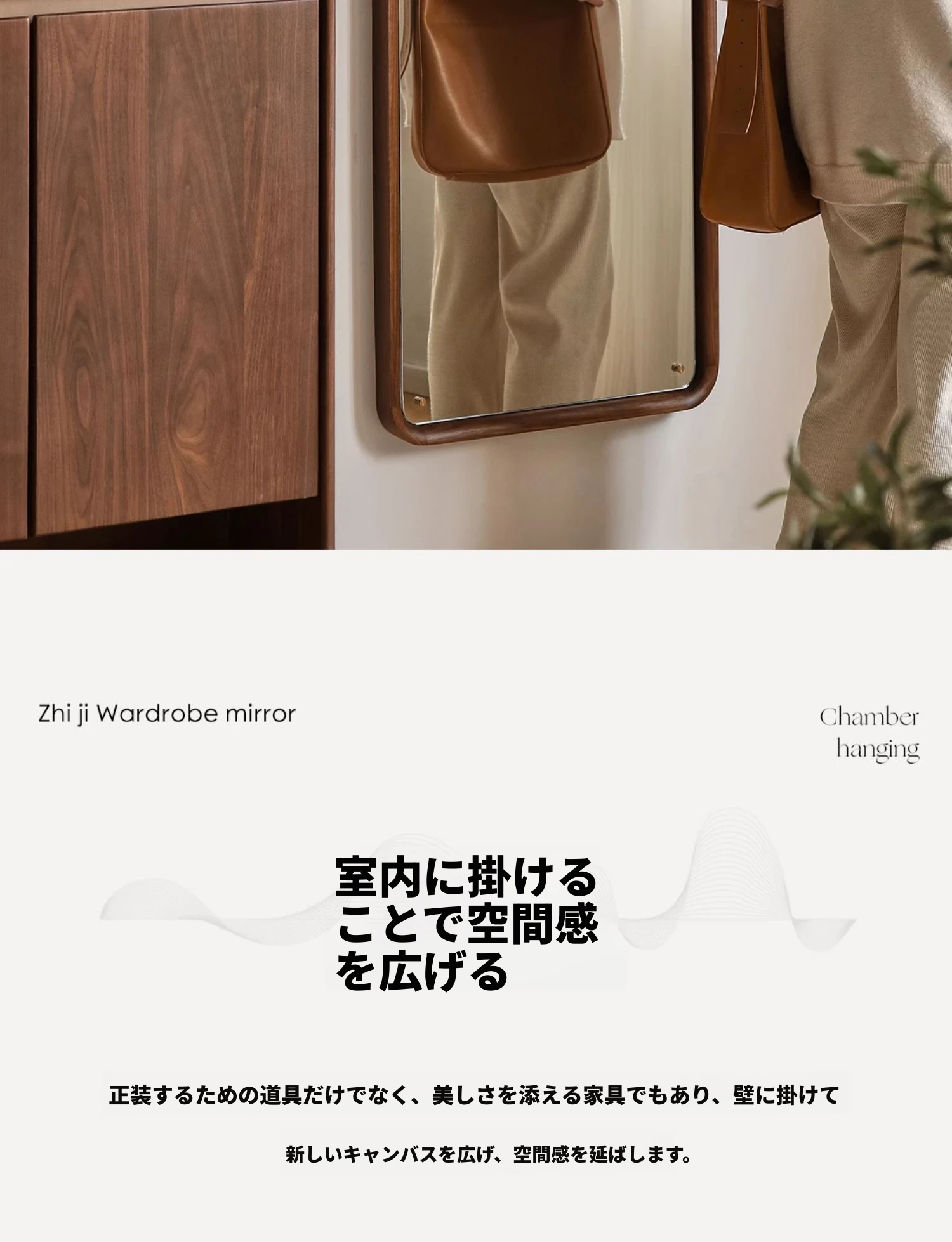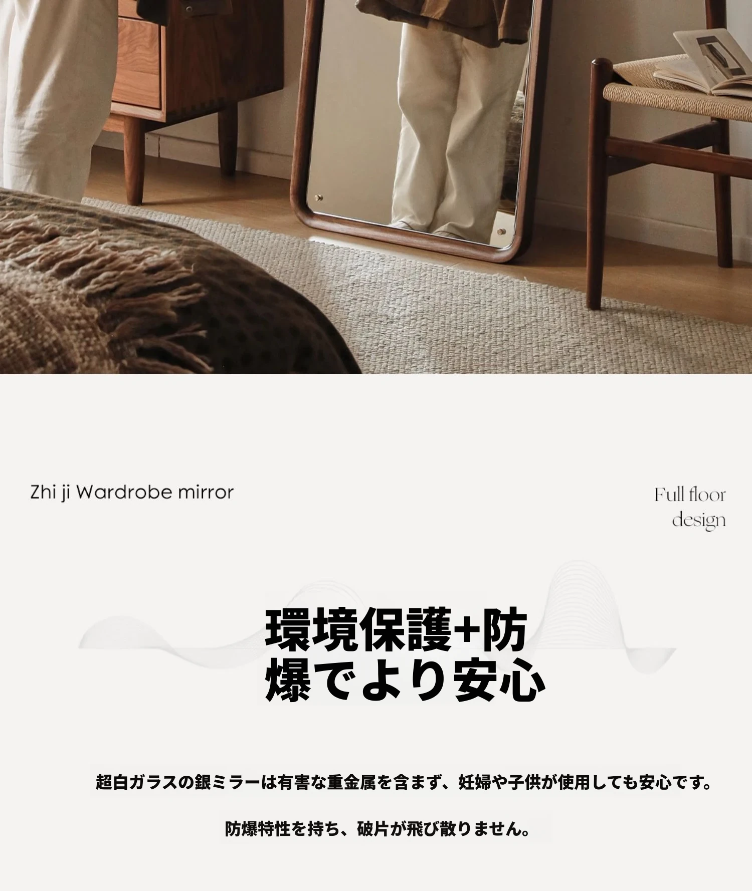 北欧スタイルの無垢材全身鏡 - ブラックウォールナット製の立て掛け鏡、壁掛けも可能で、寝室の試着に最適!シンプルで洗練されたデザインで、お部屋をより魅力的に演出します。