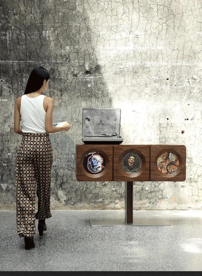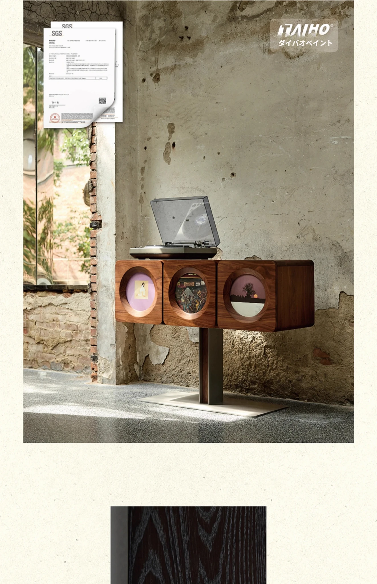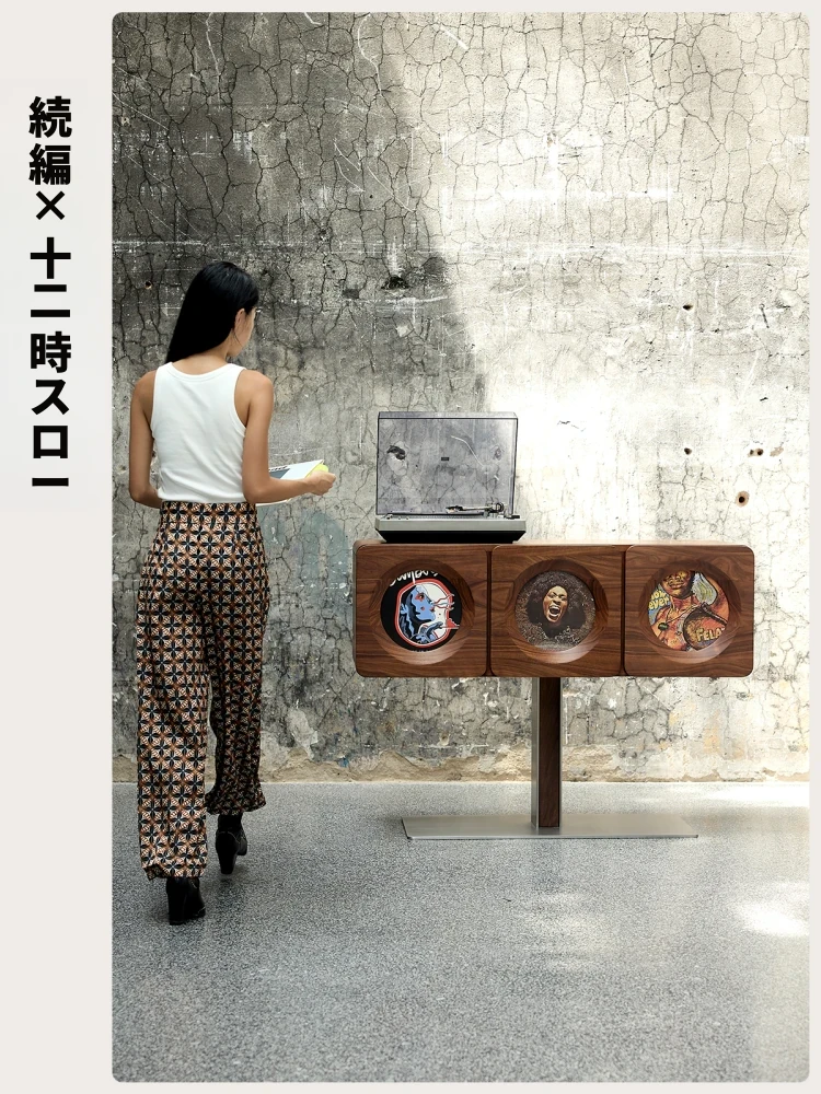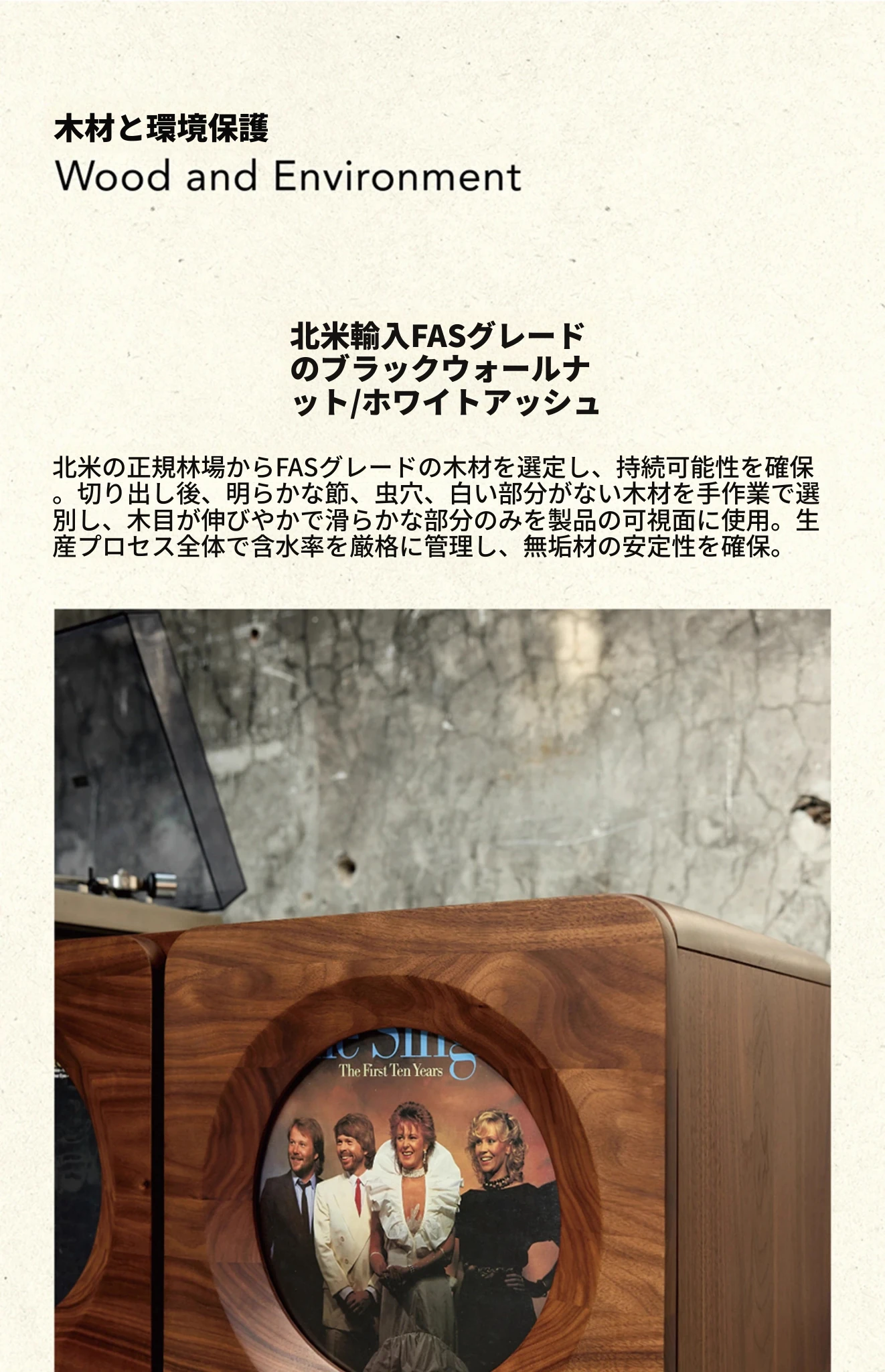 北米産ブラックウォールナットを使用したアート収納キャビネット - 美しいホワイトアッシュウッドのディスプレイキャビネットで、あなたの家具にスタイルと機能をプラス!魅力的なデザインで、大切なレコードやアイテムをおしゃれに保管。
