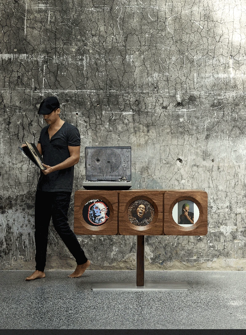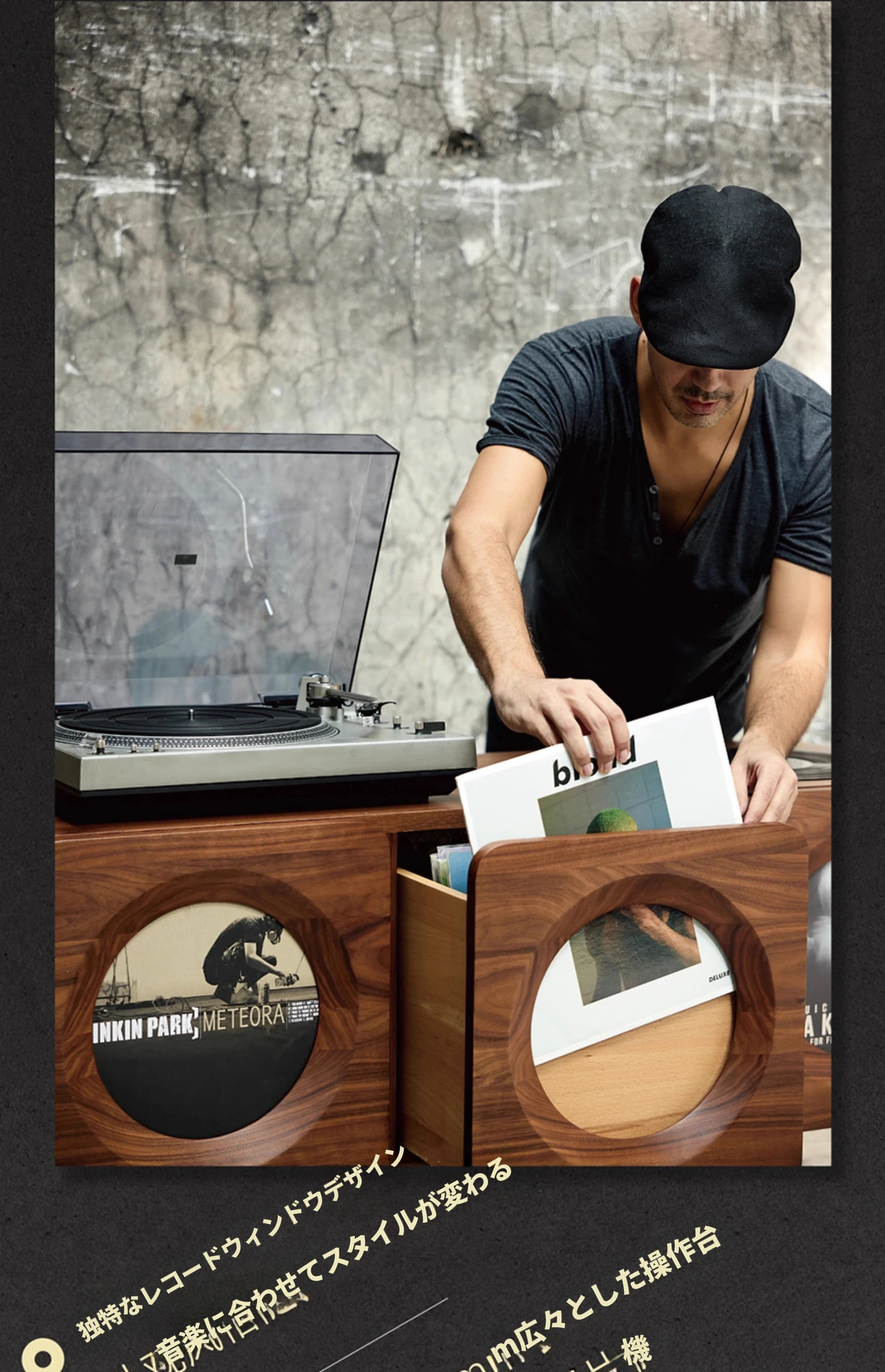SHANGHAI 12Hレコードキャビネット-ブラックウォルナット