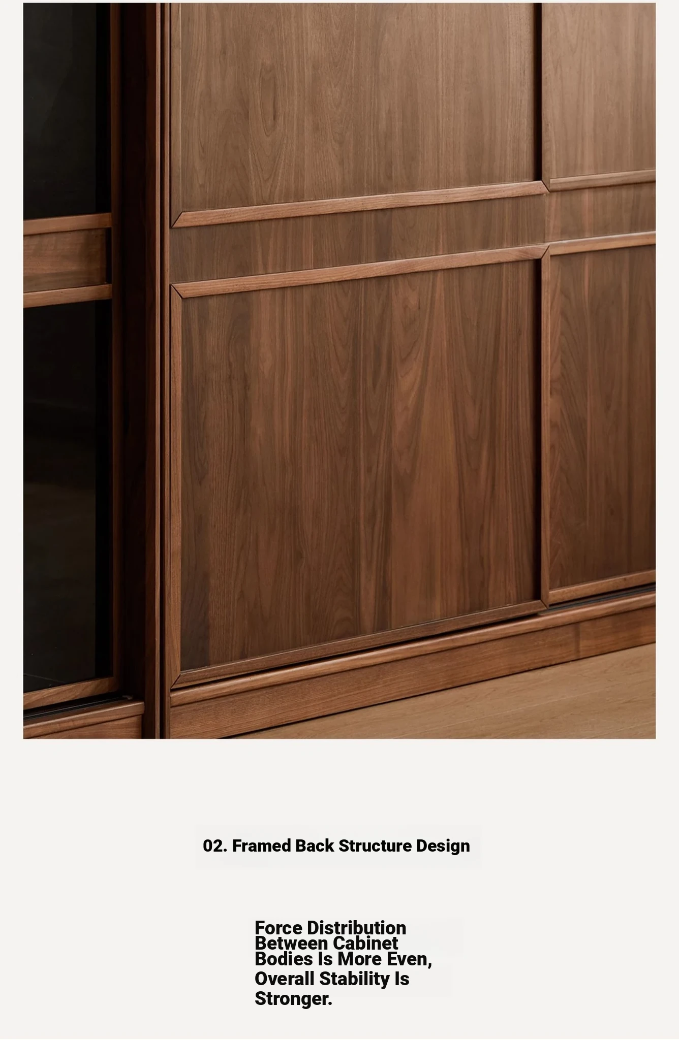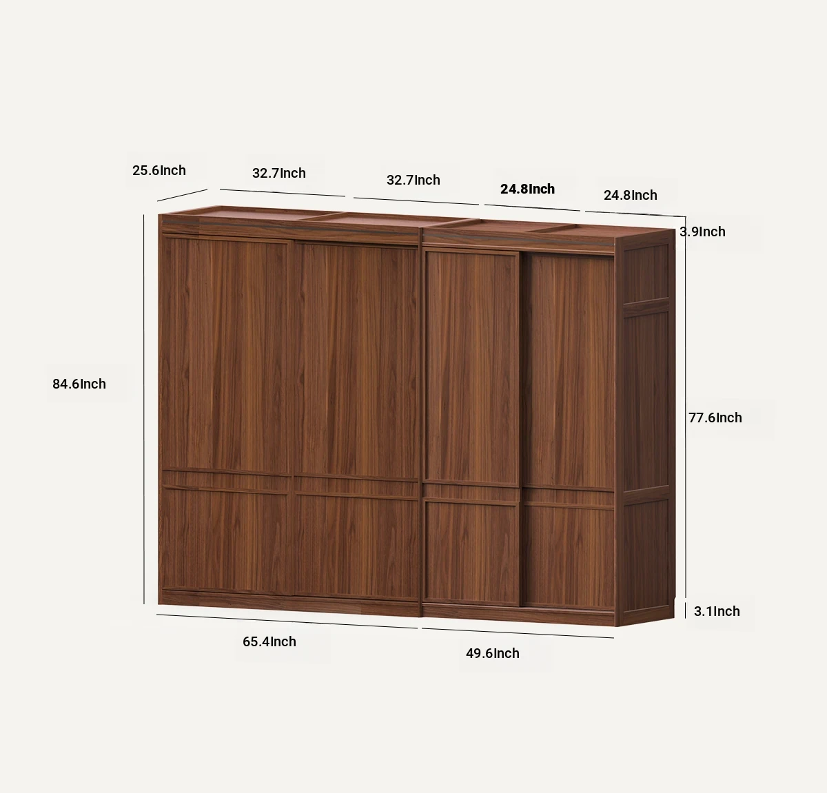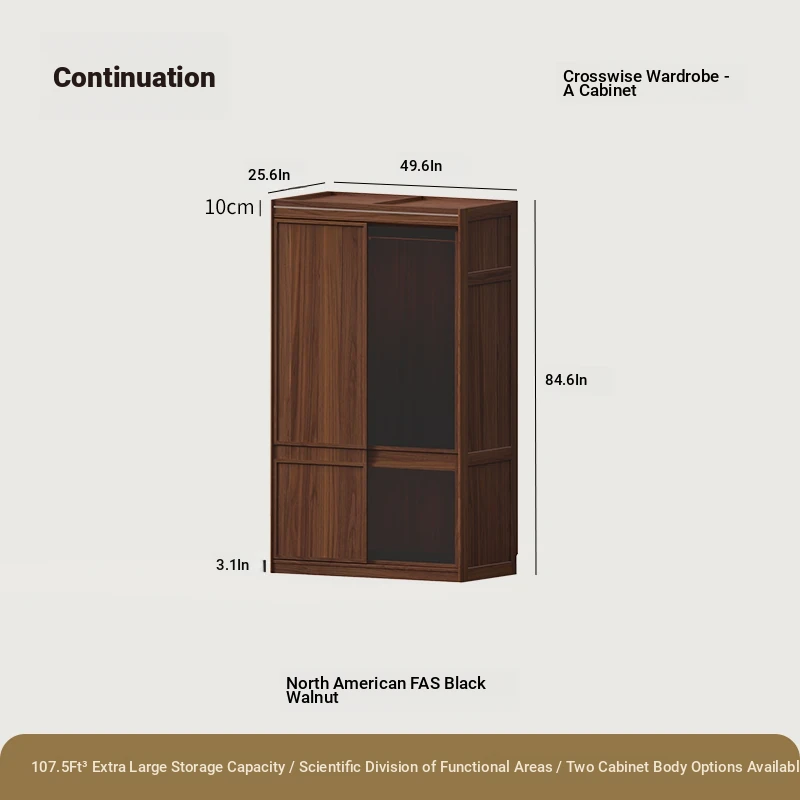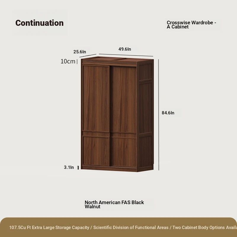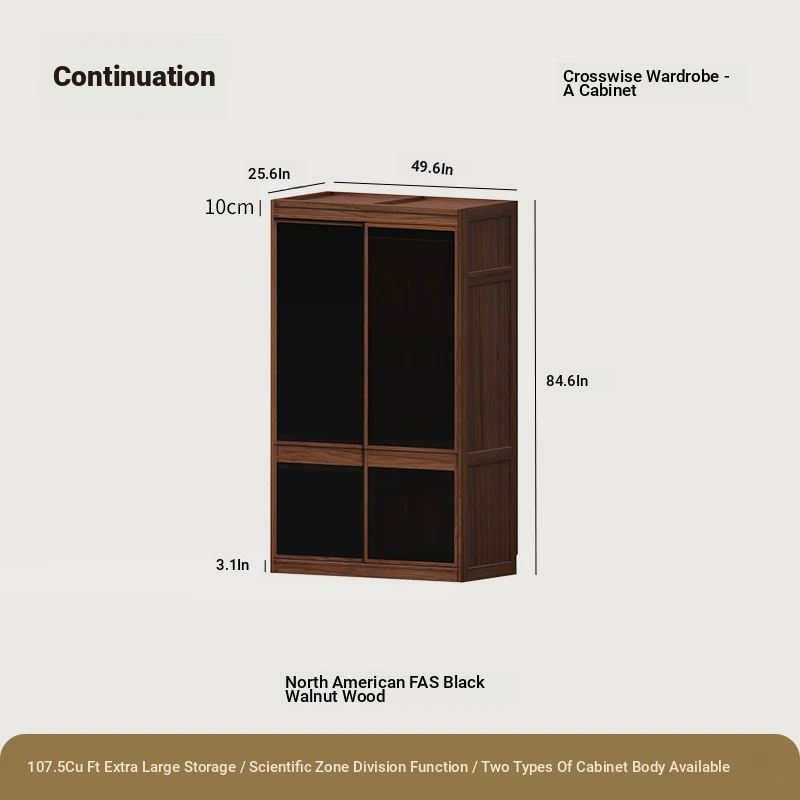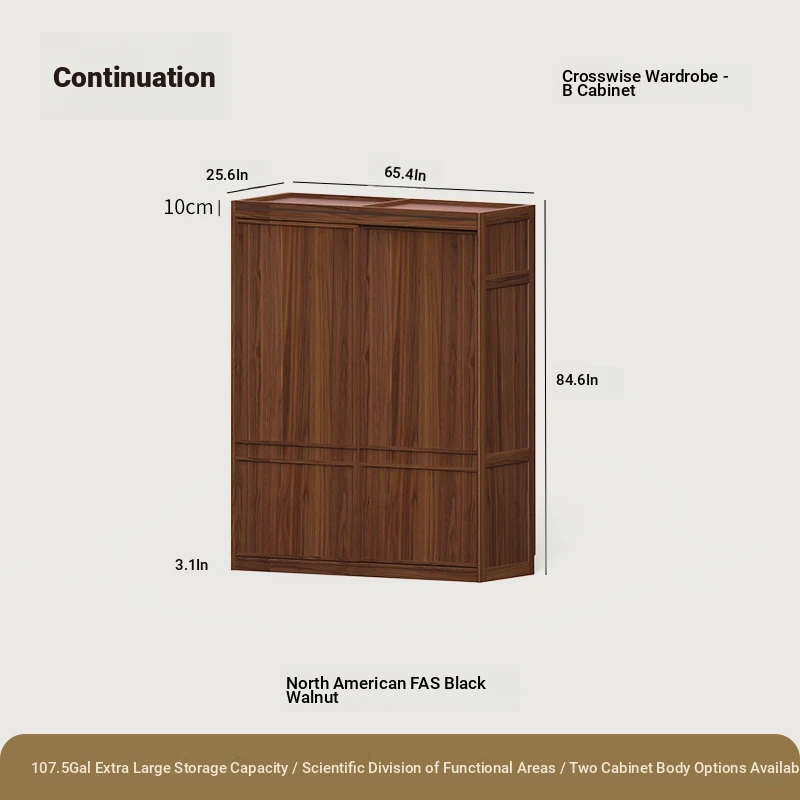 縦横衣柜Bキャビネット無垢材モデル大型二重扉ブラックウォールナット(166*65*215cm)