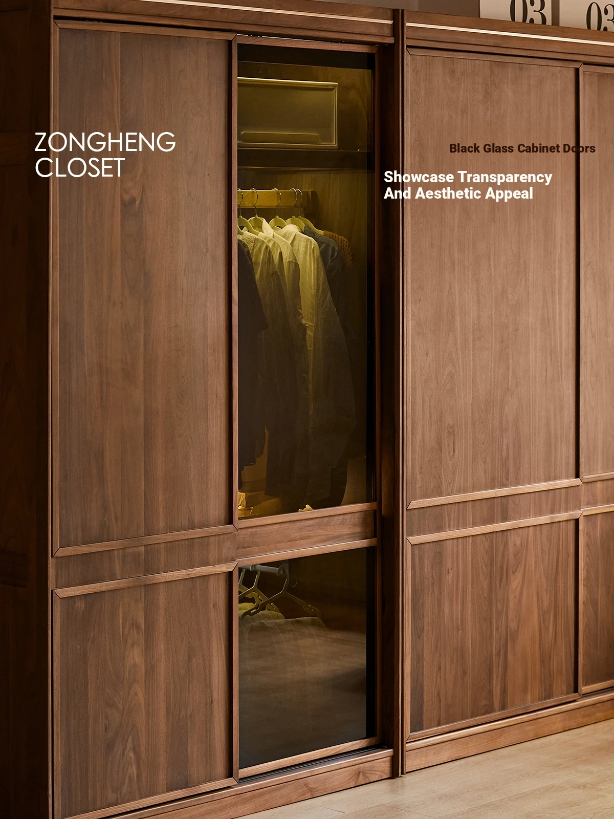 縦横衣柜Aキャビネット無垢材+ガラスモデル小型二重扉ブラックウォールナット(126*65*215cm)