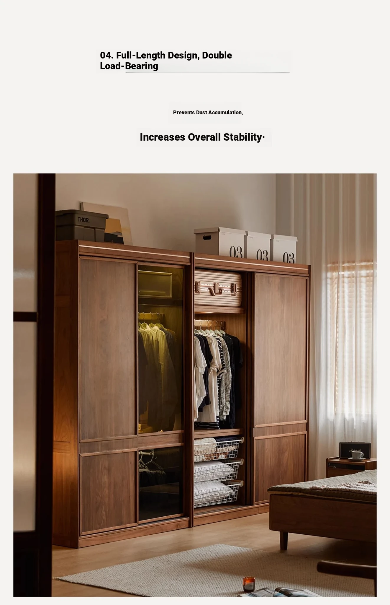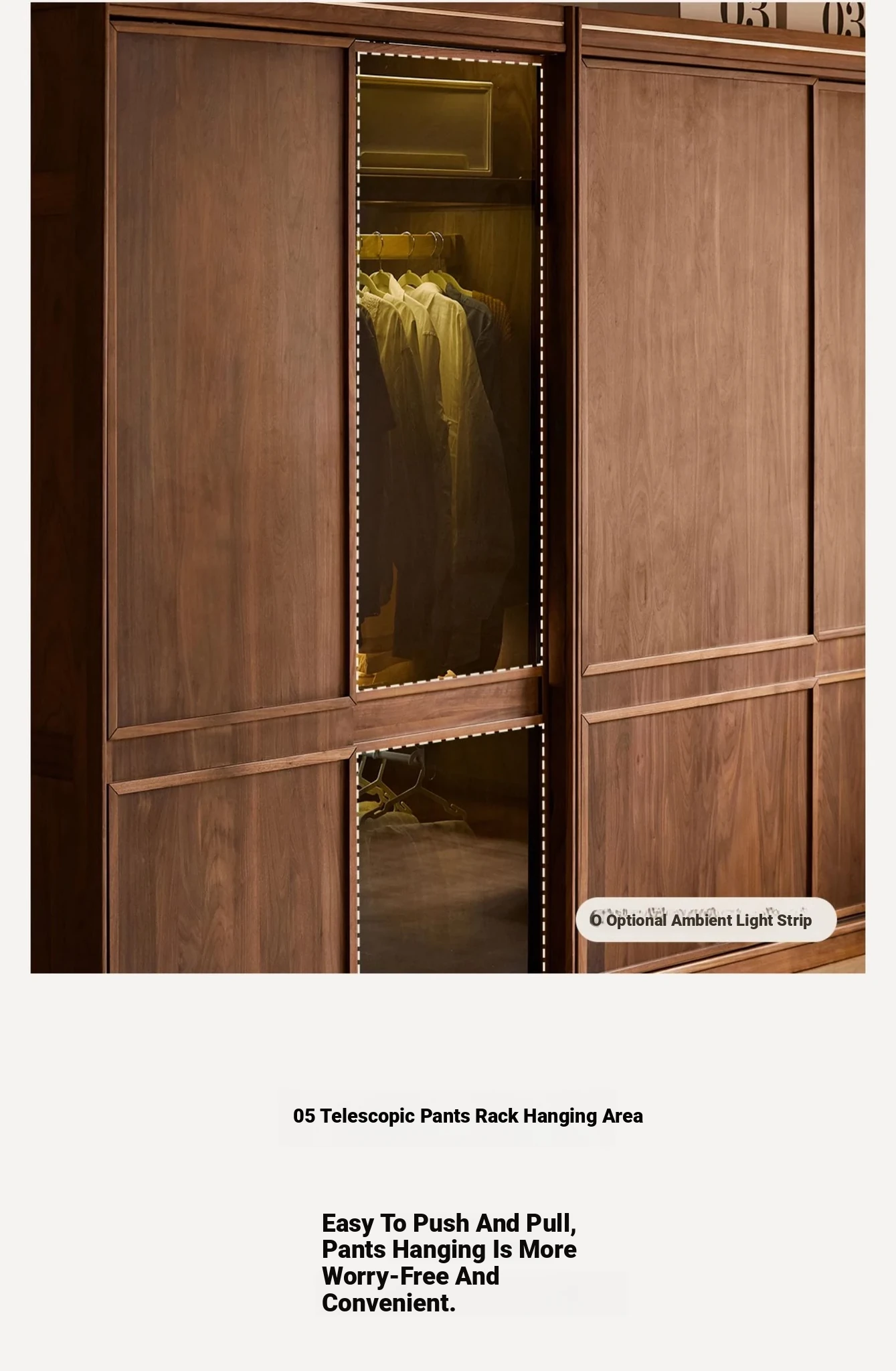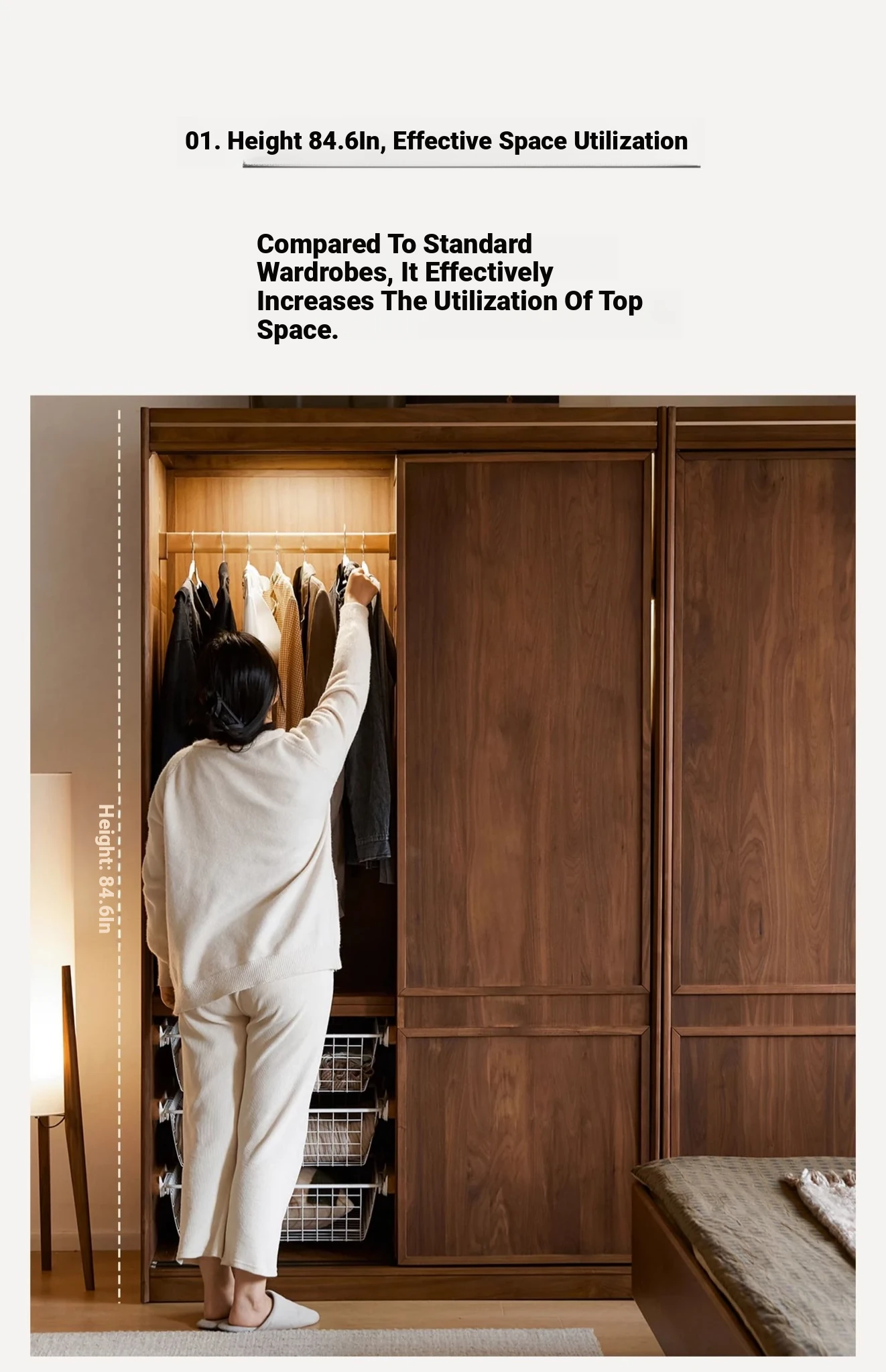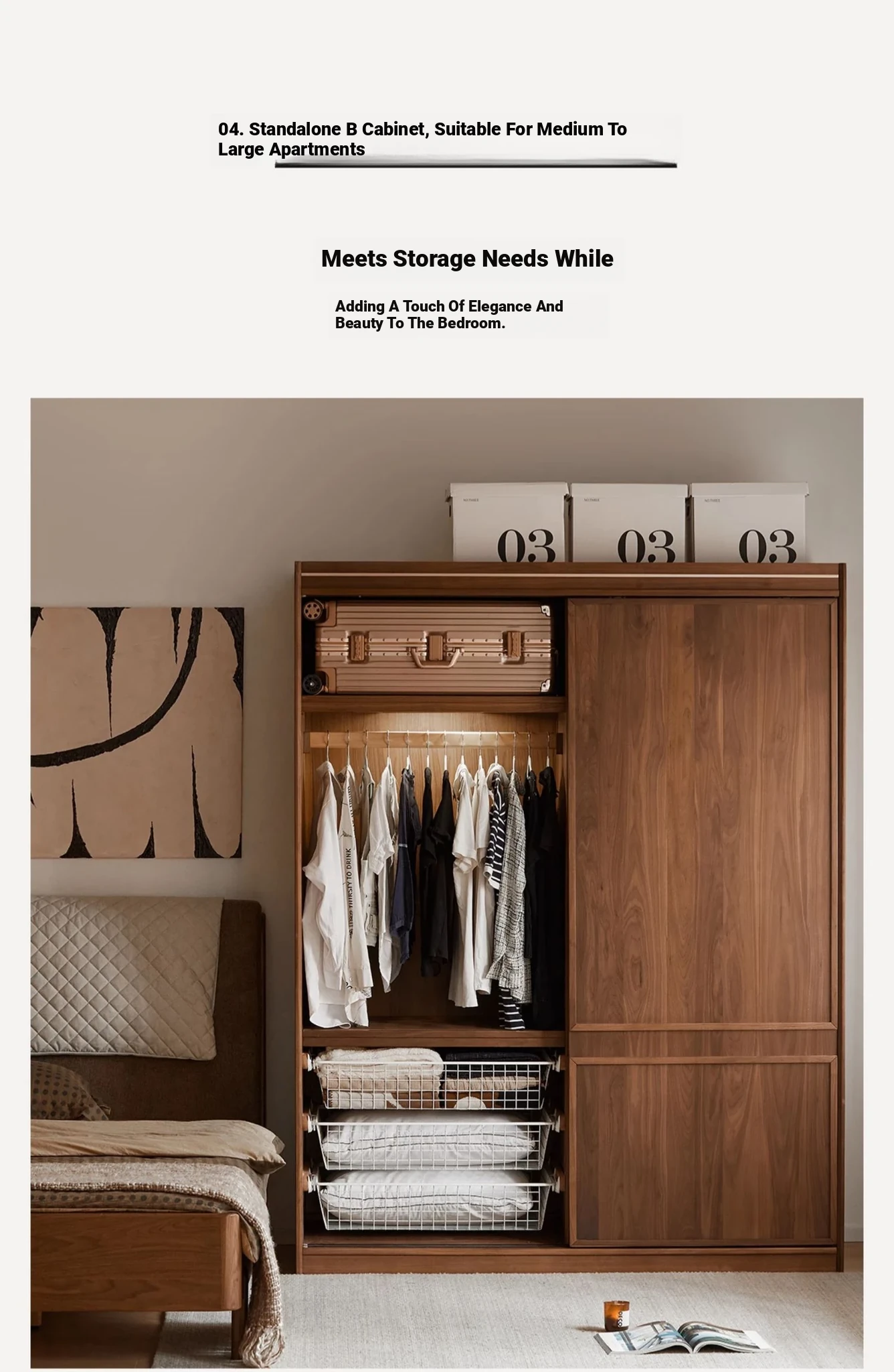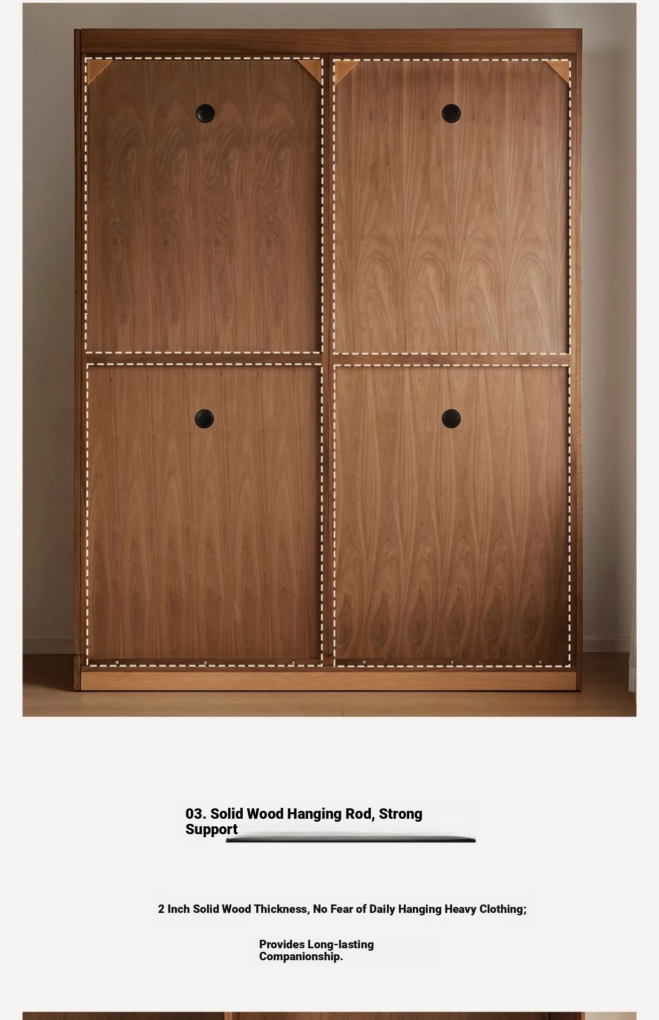 高品質な無垢材使用!ブラックウォルナット製のシンプルでスタイリッシュな移動式クローゼット。あなたの寝室にぴったりの収納力抜群の衣類収納。美しいデザインで、使い勝手も良く、生活空間を引き立てます!