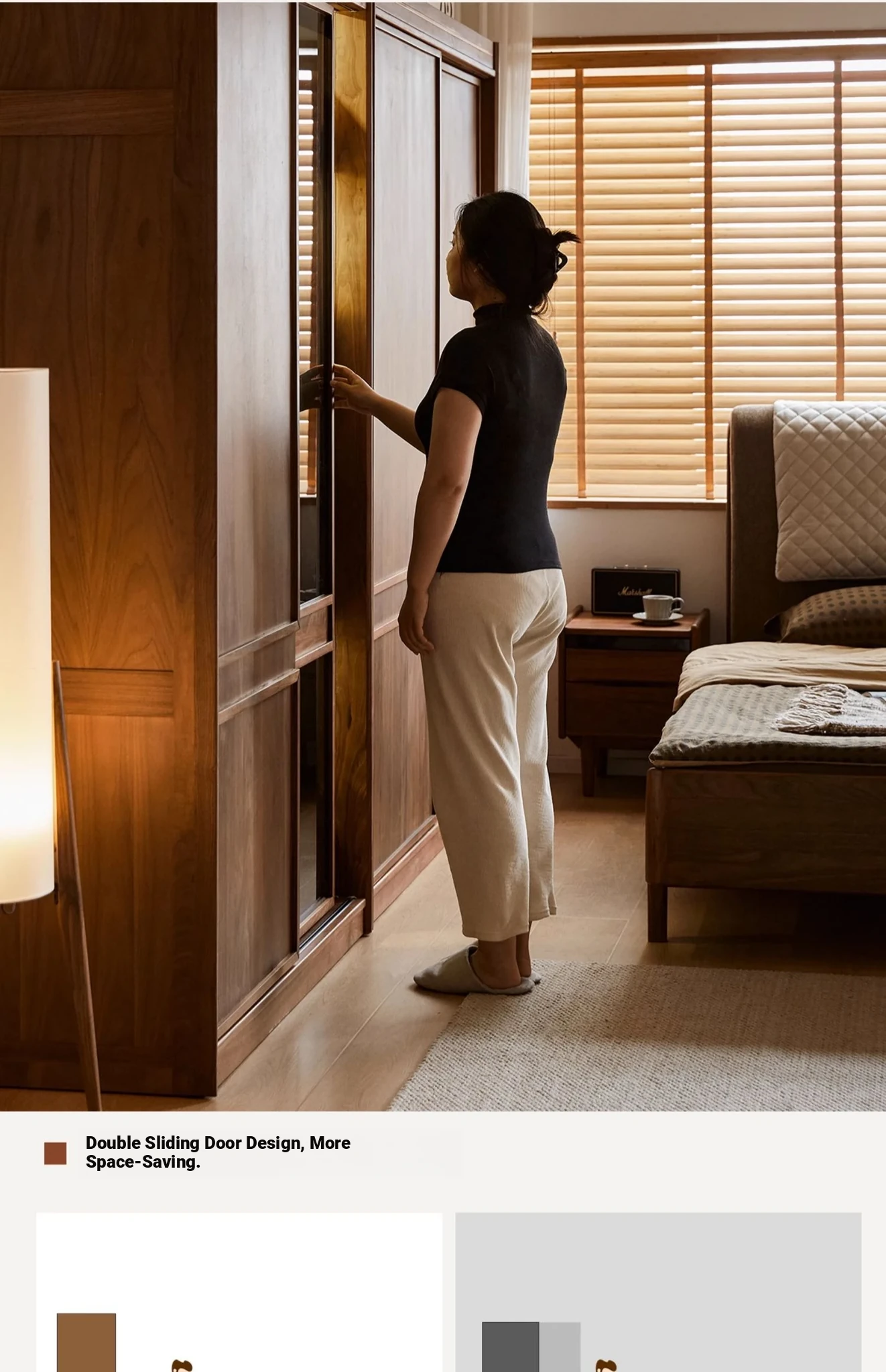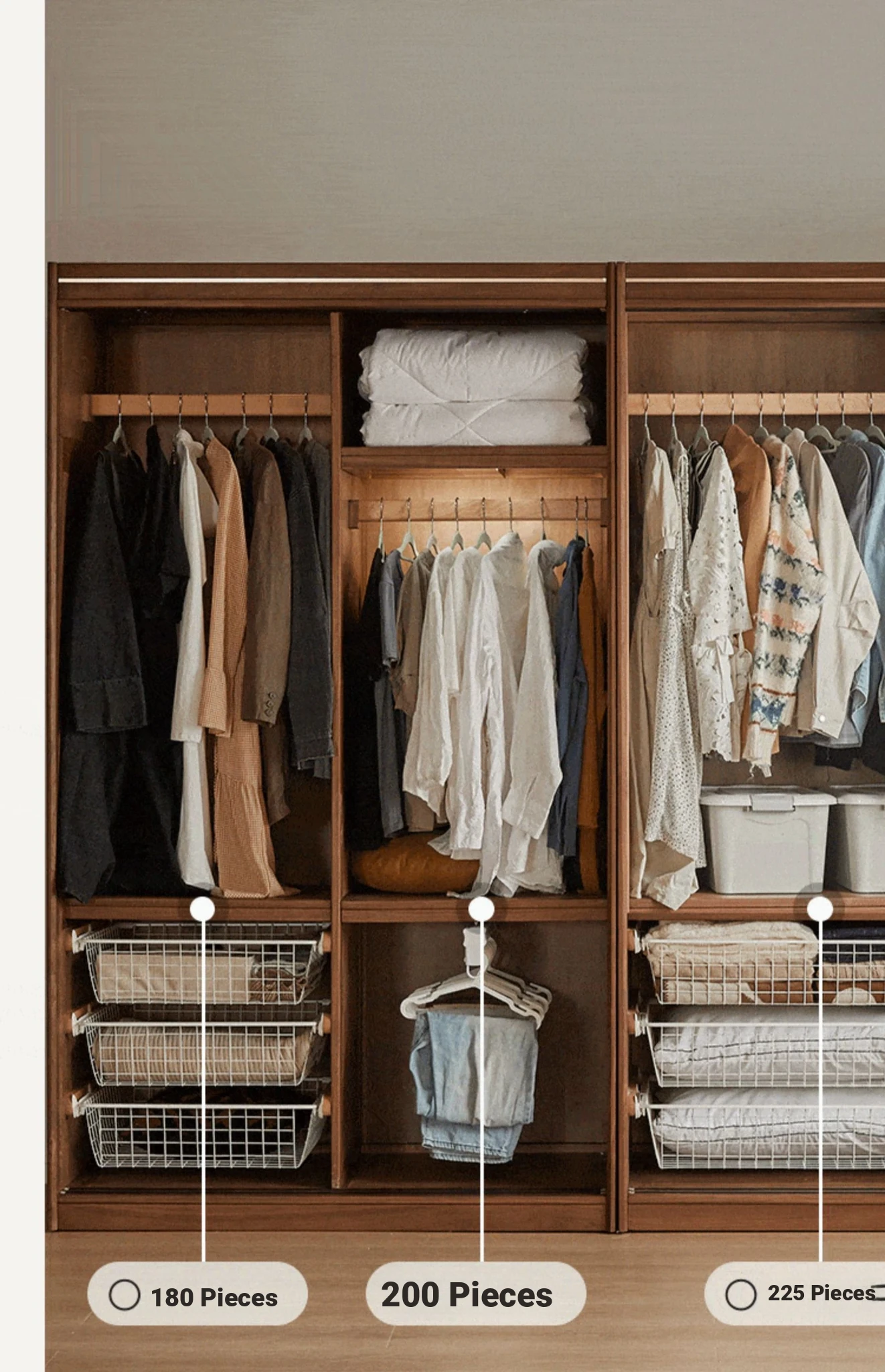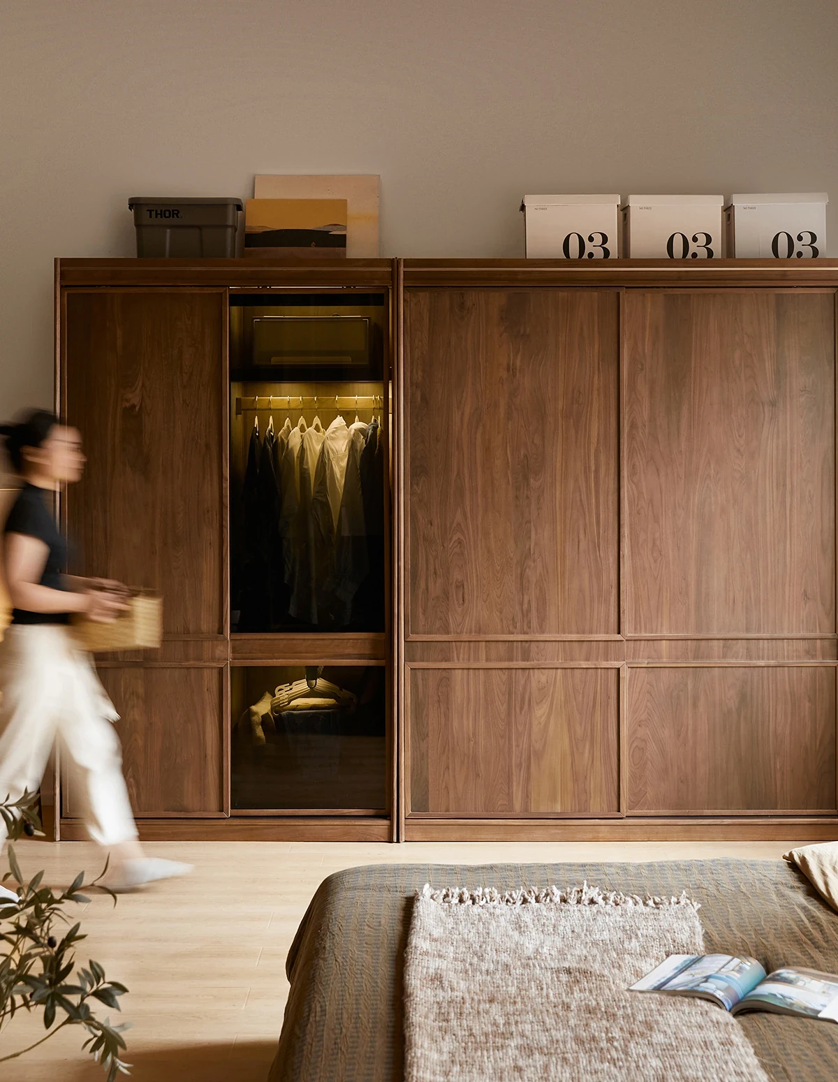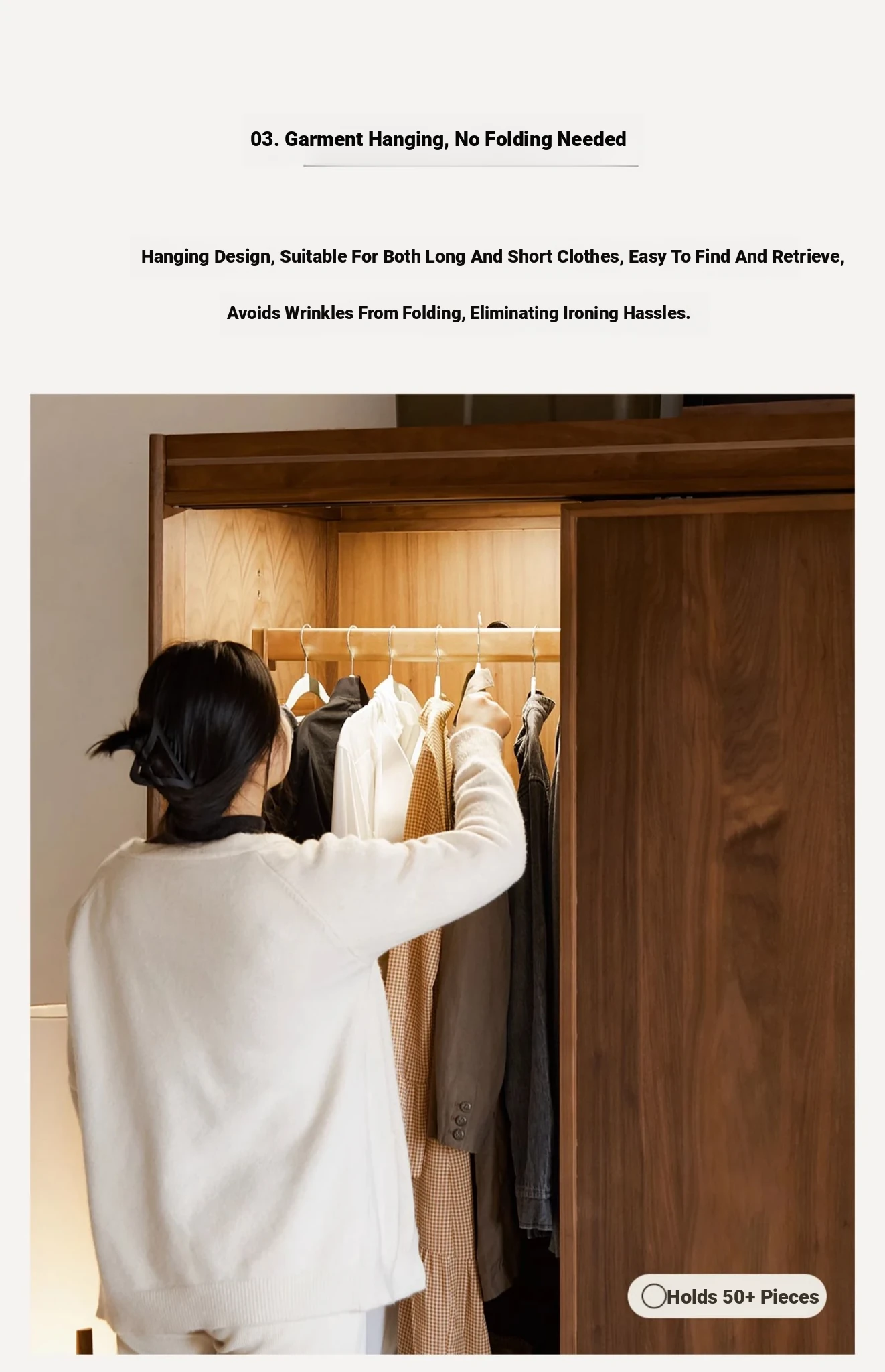 高品質な無垢材使用!ブラックウォルナット製のシンプルでスタイリッシュな移動式クローゼット。あなたの寝室にぴったりの収納力抜群の衣類収納。美しいデザインで、使い勝手も良く、生活空間を引き立てます!