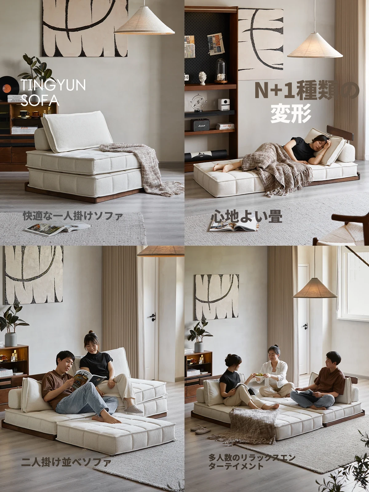 モジュール式家具のリビングにぴったり!北欧スタイルのウッドフレームとファブリックを使用した小型単身用ソファ。快適なレイジーライフを楽しめる、豆腐ブロックデザインのコンビネーションソファ。おしゃれで機能的な空間を演出します!