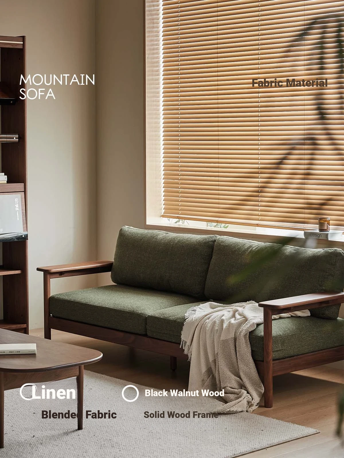 Nordic Style 3-Seater Sofa - Minimalist Japanese Design with Removable Fabric Covers, Solid Walnut Wood Frame, Perfect for Your Living Room.